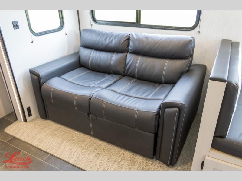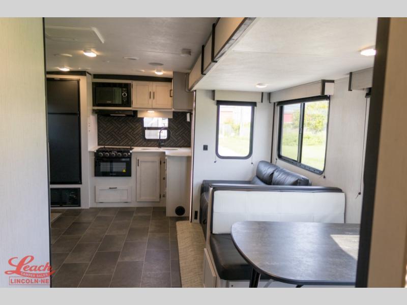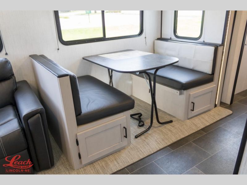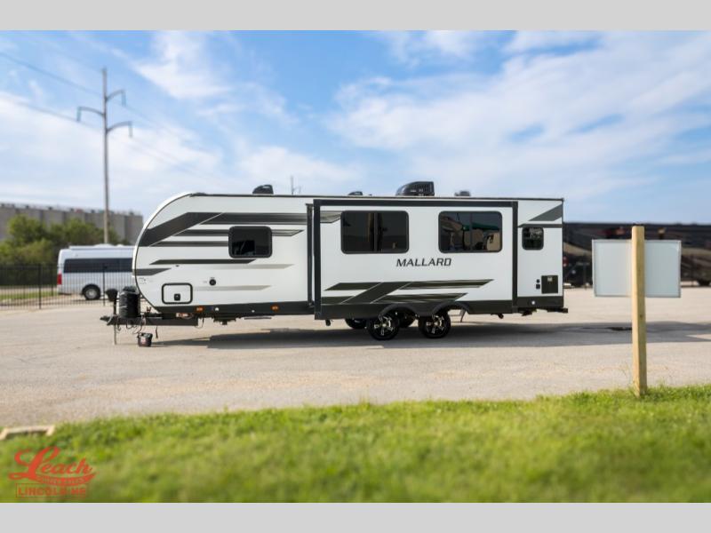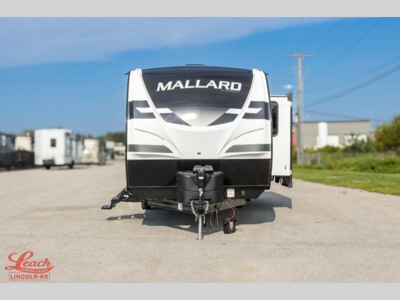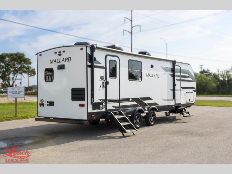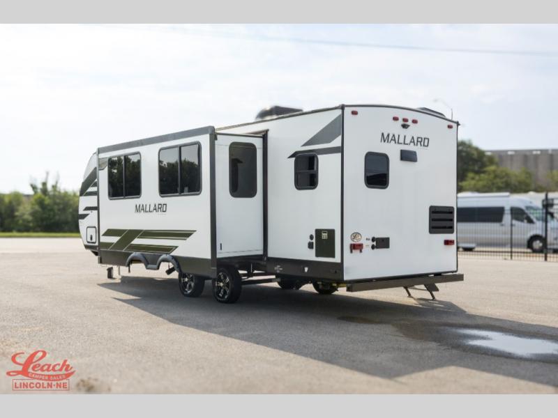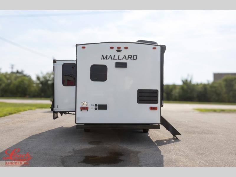 How would it sound to go camping in the great outdoors with plenty of inside comforts? This Mallard travel trailer gives you excellent interior comfort with the full rear bathroom that has lots of counter space for your toiletries and a large slide out in the living area that features a sofa and booth dinette where you can enjoy your meals, play a card game, or sleep. When you're ready to wind down your night, you can either head into the front private bedroom to enjoy a good night's rest on the king bed or head outdoors underneath the 17' power awning with LED lighting to visit with others RVers.