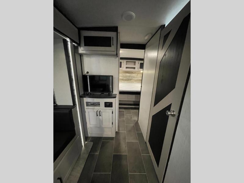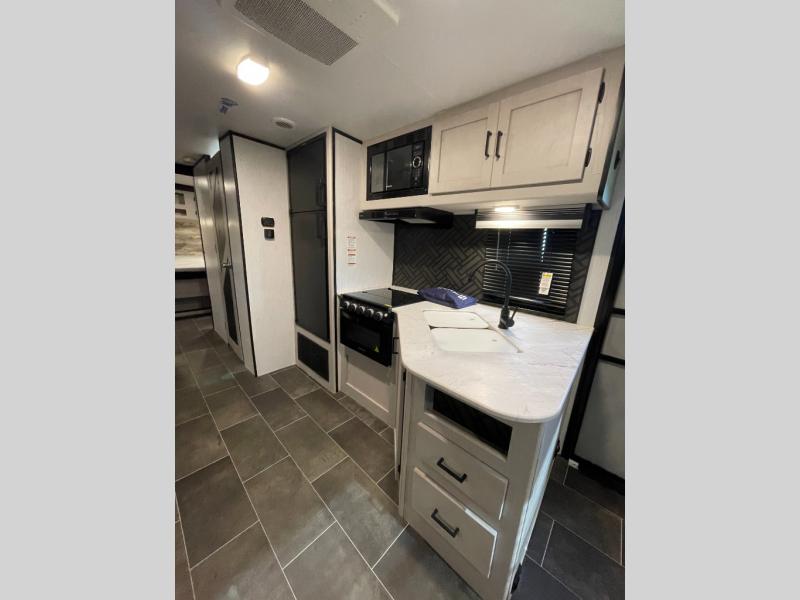 The Heartland Mallard travel trailer is quite impressive with its innovative features! The flip-down exterior steps and glow-in-the-dark graphics are some of the top exterior features, and the all-new Master Chef kitchen with Infinity edge countertops and stainless steel undermount sink is one of the top interior features that will make camping life easier. The forced-air heated and enclosed underbelly is a great feature that protects your trailer from the outside weather, and the Wide Traxx axle system, leaf spring suspension, E-Z lube hubs, and aluminum rims all work together to give you a great ride to the campsite. The Mallard has also been prepped for a solar panel, Wi-Fi, and a back-up camera, and it also has a cable-ready hook-up.