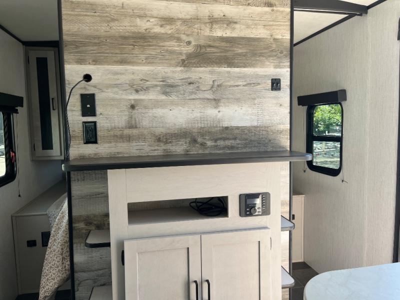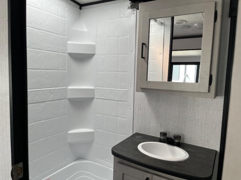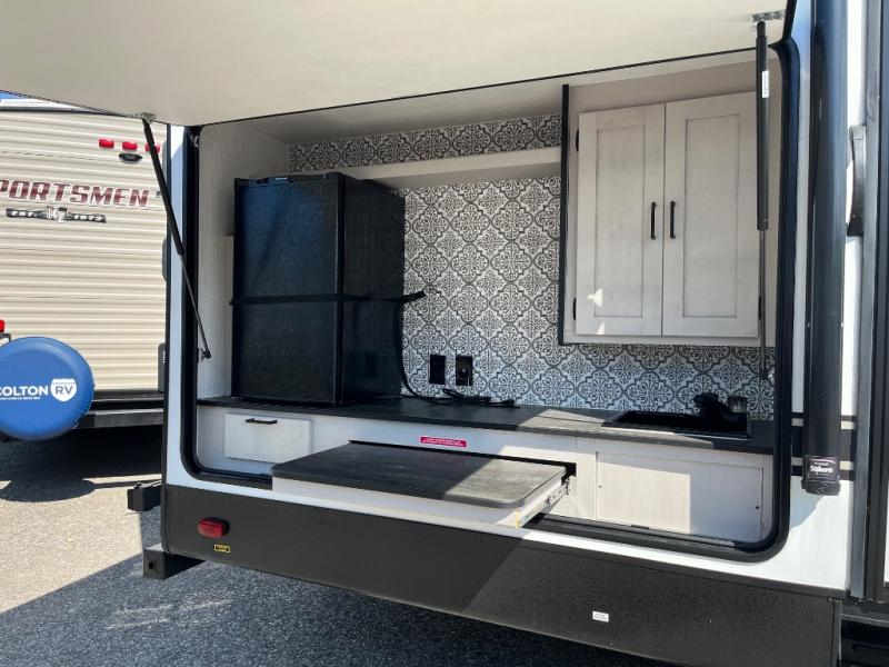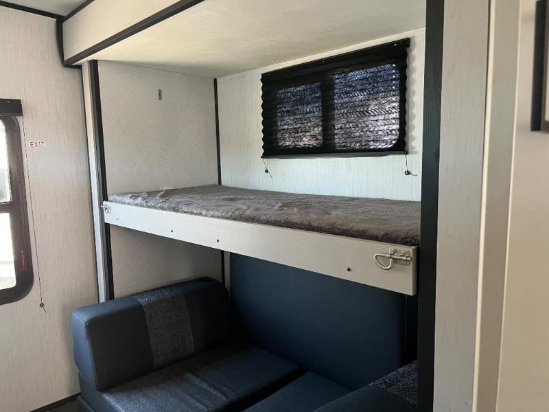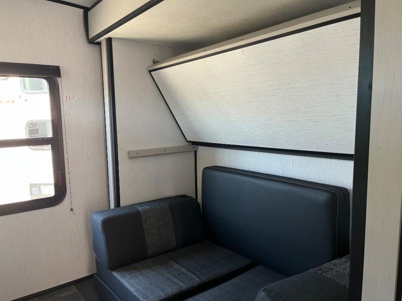 Imagine having two entry doors in your next travel trailer allowing you to have easy access to the full bathroom when you are outside or inside! This Mallard travel trailer provides you with that and more. There's something for everyone between the rear private bunkhouse with an entertainment center, two bunks, and seating, the exterior kitchen to grill up some juicy burgers while enjoying the sunshine, and the U-shaped dinette that can be used for meal time, game time, and bed time. You will even have your own private retreat when you head into the front private bedroom which features a king bed and overhead cabinets!