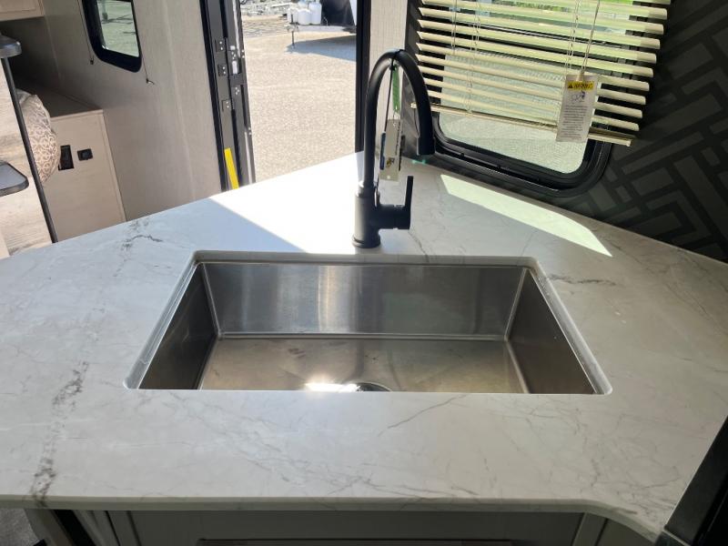The Heartland Mallard travel trailer is quite impressive with its innovative features! The flip-down exterior steps and glow-in-the-dark graphics are some of the top exterior features, and the all-new Master Chef kitchen with Infinity edge countertops and stainless steel undermount sink is one of the top interior features that will make camping life easier. The forced-air heated and enclosed underbelly is a great feature that protects your trailer from the outside weather, and the Wide Traxx axle system, leaf spring suspension, E-Z lube hubs, and aluminum rims all work together to give you a great ride to the campsite. The Mallard has also been prepped for a solar panel, Wi-Fi, and a back-up camera, and it also has a cable-ready hook-up.