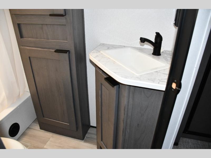 Get cleaned up without the campground lines—full tub/shower, toilet, and sink included -