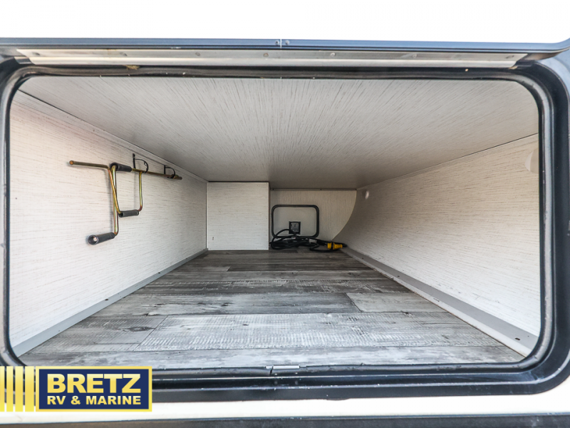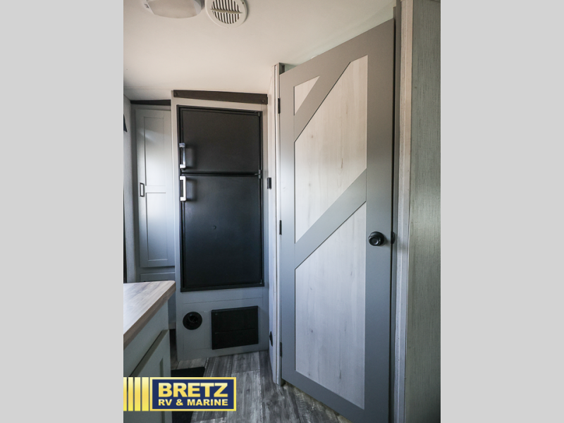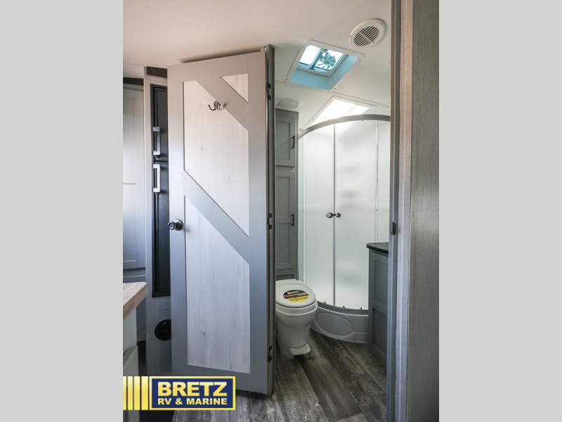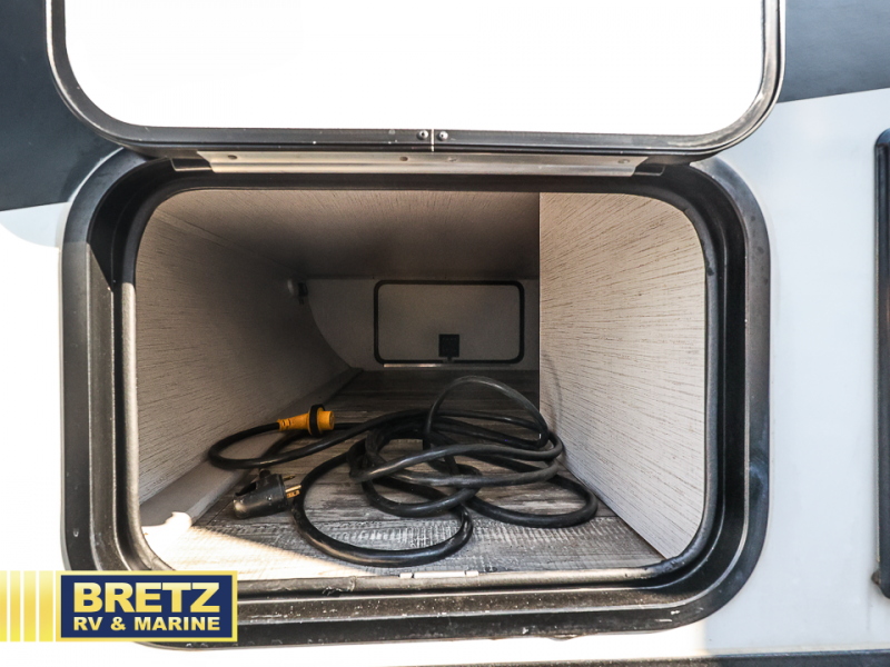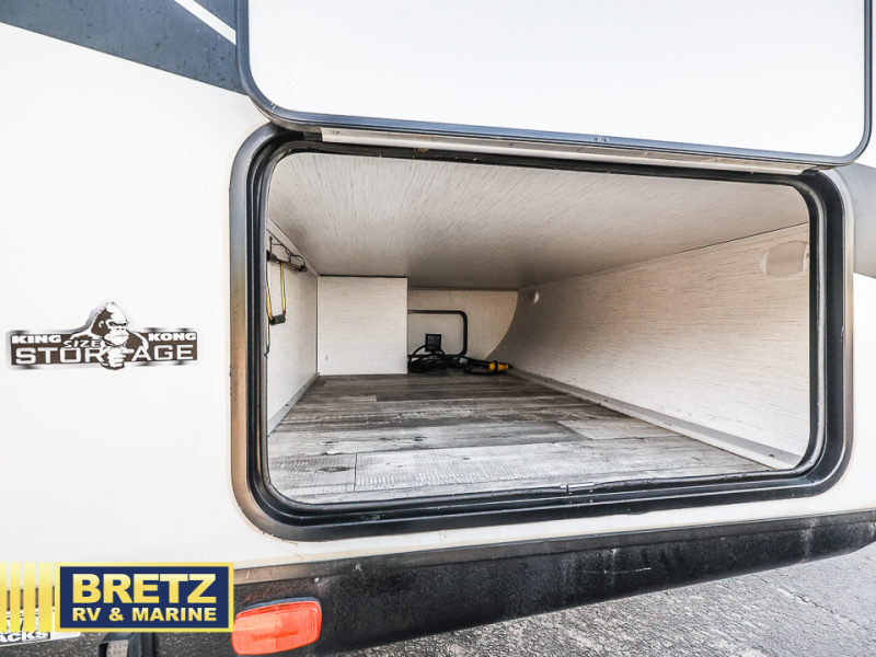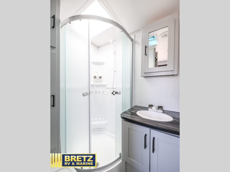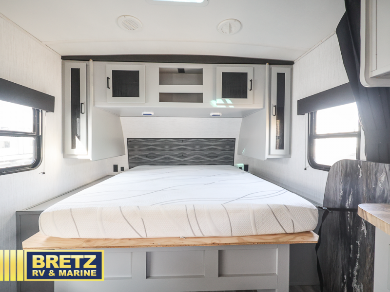 This is the perfect couple's trailer for your weekend excursions. You will love having your own king bed up front that also includes a privacy curtain. The sofa with a table will provide a place to dine at each day, and an overnight guest can sleep here as well. You'll find a three burner cooktop and a microwave oven in the kitchen, as well as a stainless steel sink and a pantry for snacks. After dinner, head outdoors to relax under the 12' power awning LED lights before turning in for the night.