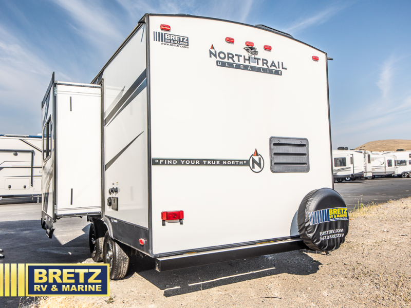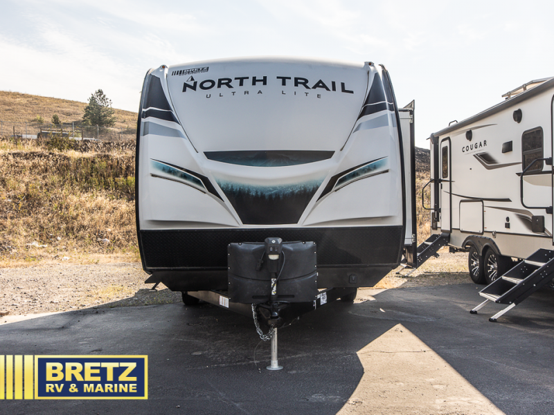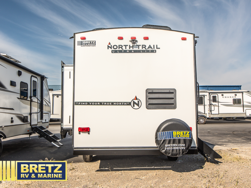 When you choose a North Trail travel trailer by Heartland you are choosing comfort, convenience, and quality craftsmanship at its best. The block foam brick insulation, enclosed and heated underbelly, plus Weather Guard thermal protection mean you can camp all year around. Each model features a Wide Trax suspension for a smooth ride, and the backup camera prep and solar prep make camping that much easier if you choose those options. Some of the other exterior features you will appreciate are the outside shower, the power stabilizer jacks and power tongue jack, and the outside speakers to keep the party going. Head inside to find stainless steel appliances, oversized windows, and premium flooring that is tear, slip, mold, mildew and cold crack resistant! You can't beat a North Trail travel trailer. Choose your favorite floorplan today!