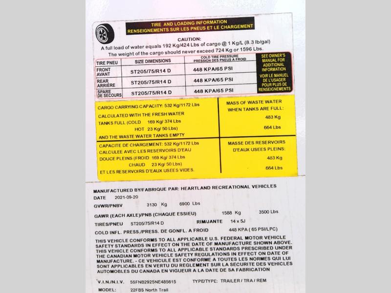 Used 2022 Heartland North Trail 22FBS Travel Trailer