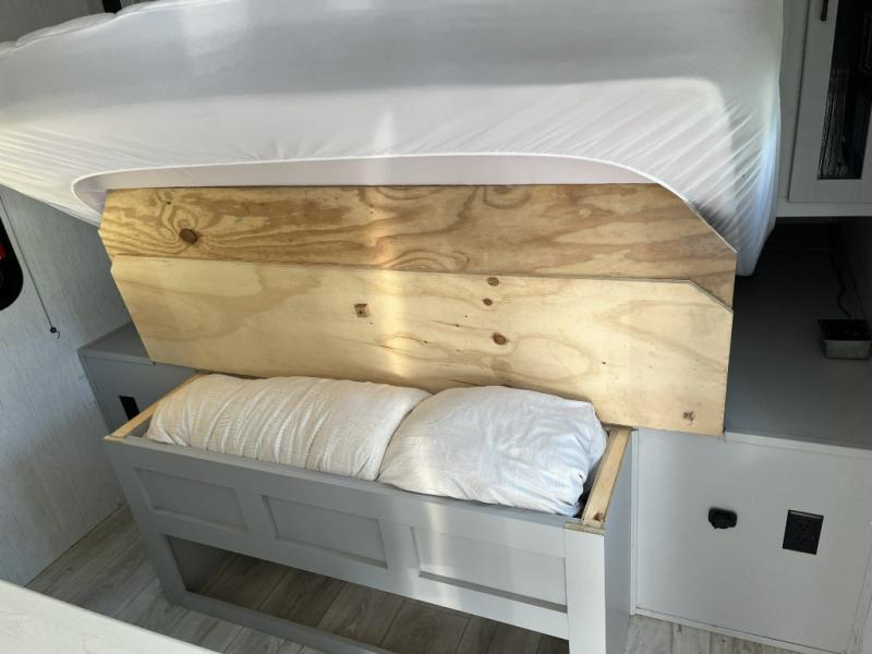 What I'd improve: I took out the couch,( easy 12 screws) then removed partial knee wall also easy save trim pieces. Replaced that space with 2 small swivel rocker much more comfortable and easy to navigate around the bed.8 years ago | William M. from Riverview, FL