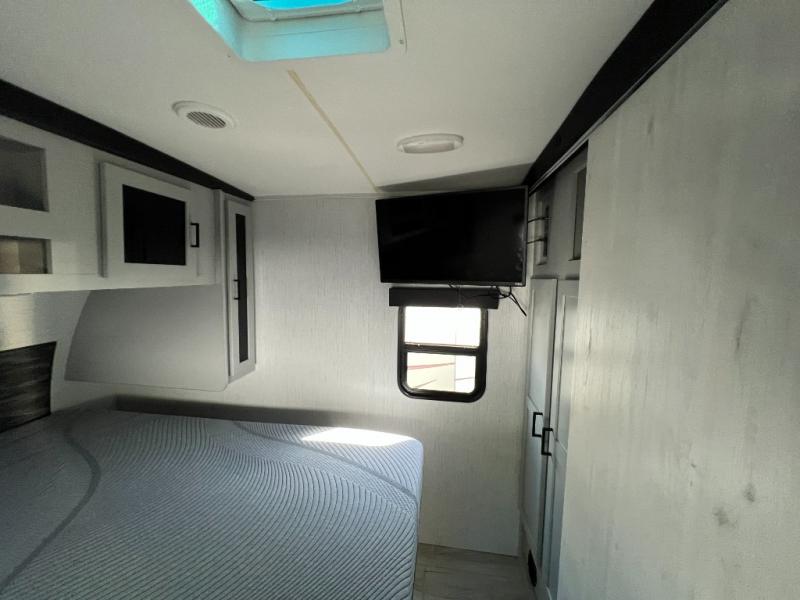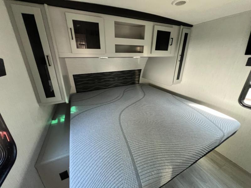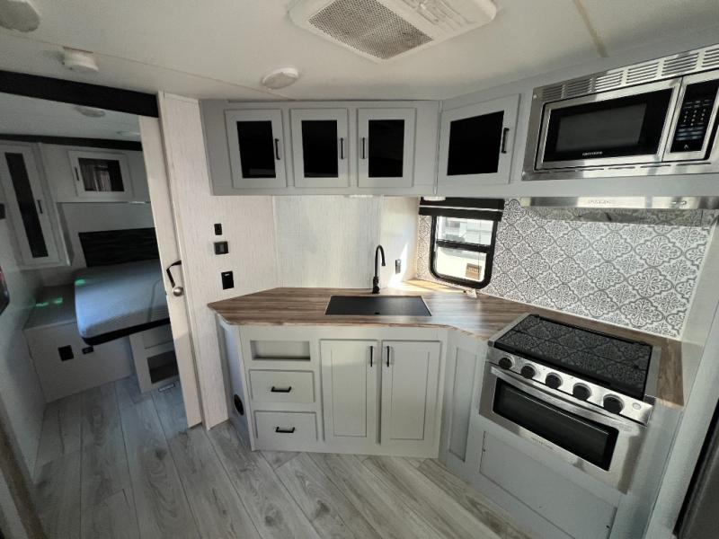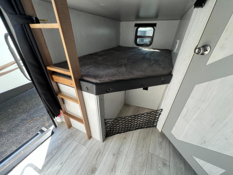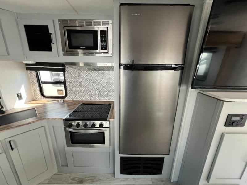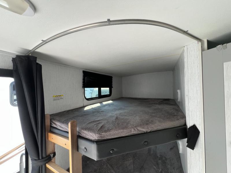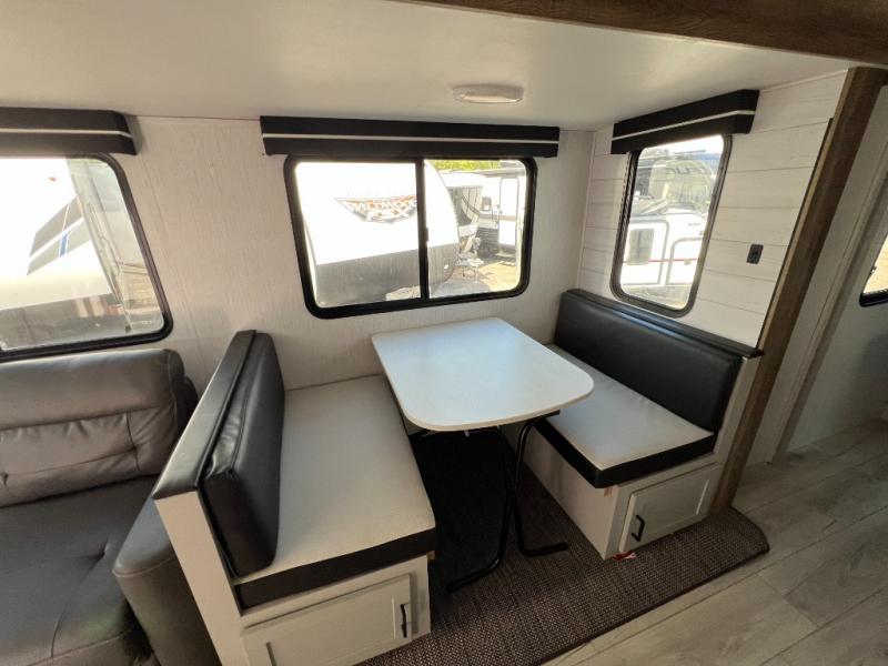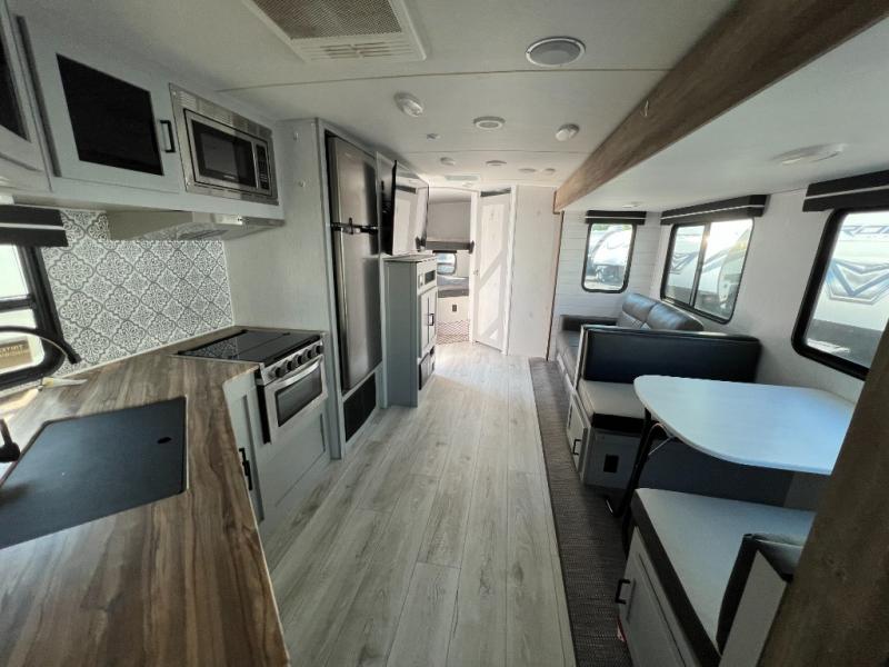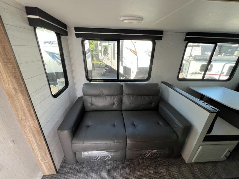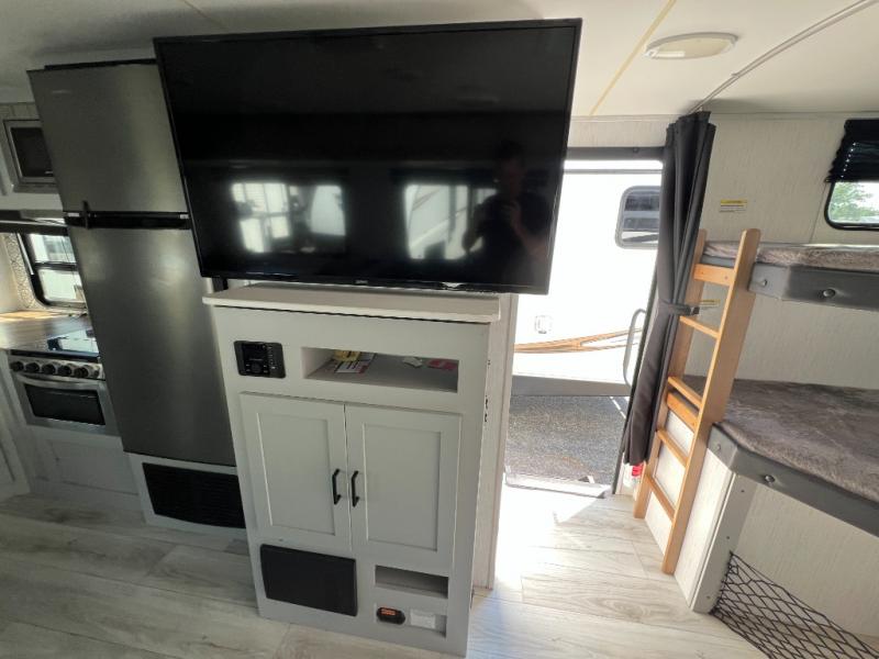 If you've been searching for a family-friendly travel trailer, your search is over with this model that can sleep eight to nine people each night. The double queen bunks are right beside the full bath for convenience, and the sofa and booth dinette are within the slide out, which will provide more floor space. Store your paper goods and snacks in the walk-in pantry, and your valuables can go in the overhead compartments. This model features an exterior kitchen and a 19' power awning with LED lights for tons of outdoor fun!