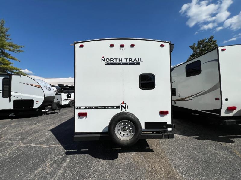 When you choose a North Trail travel trailer by Heartland you are choosing comfort, convenience, and quality craftsmanship at its best. The block foam brick insulation, enclosed and heated underbelly, plus Weather Guard thermal protection mean you can camp all year around. Each model features a Wide Trax suspension for a smooth ride, and the backup camera prep and solar prep make camping that much easier if you choose those options. Some of the other exterior features you will appreciate are the outside shower, the power stabilizer jacks and power tongue jack, and the outside speakers to keep the party going. Head inside to find stainless steel appliances, oversized windows, and premium flooring that is tear, slip, mold, mildew and cold crack resistant! You can't beat a North Trail travel trailer. Choose your favorite floorplan today!