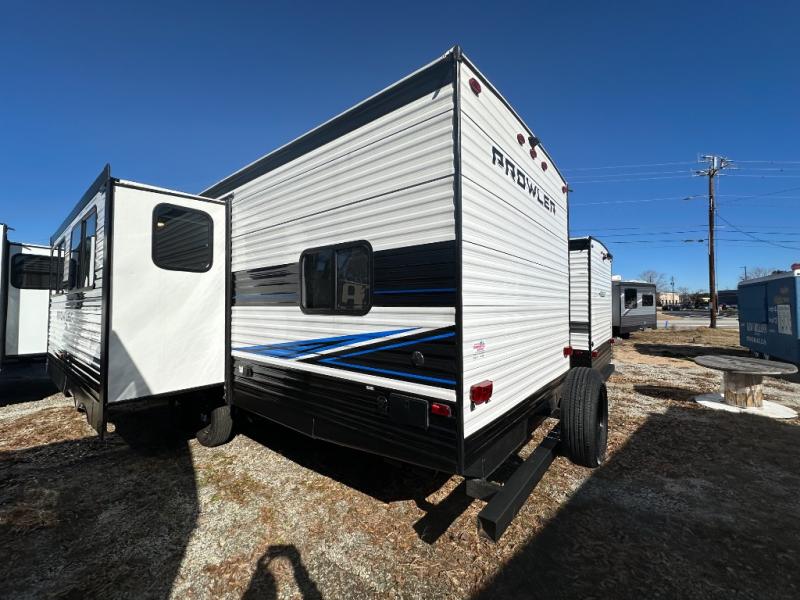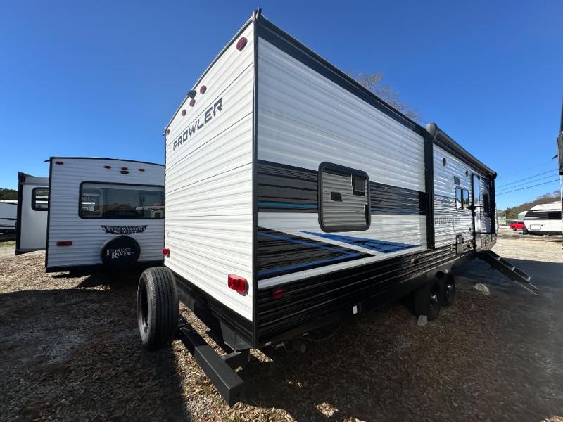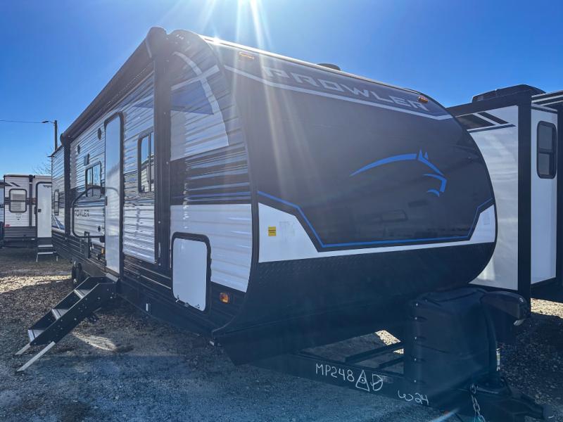 Get ready for comfortable and easy camping with the Prowler travel trailers by Heartland. These models feature durable construction with the performastructure aluminum front wall, the cambered structural steel I-beam frame, and the fully walkable roof. The MEGA bright pass-through storage features 52 cu. ft. of exterior storage with mega sized access doors, LED lights, and a finished interior to keep your gear secure. You'll fall in love with the at-home kitchen the includes Duralast countertops, a residential refrigerator, plus a stainless steel double bowl undermount sink for easy clean-up. These travel trailers also feature panoramic windows, an EZ clean interior, USB charging ports throughout, and many more comforts! Don't let the Prowler travel trailers slip away. Choose your favorite floorplan today!