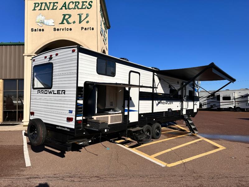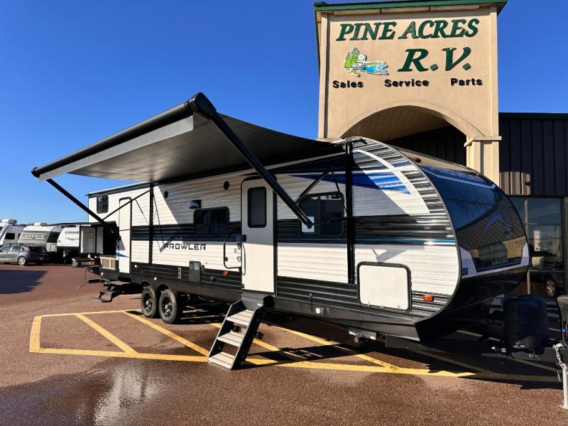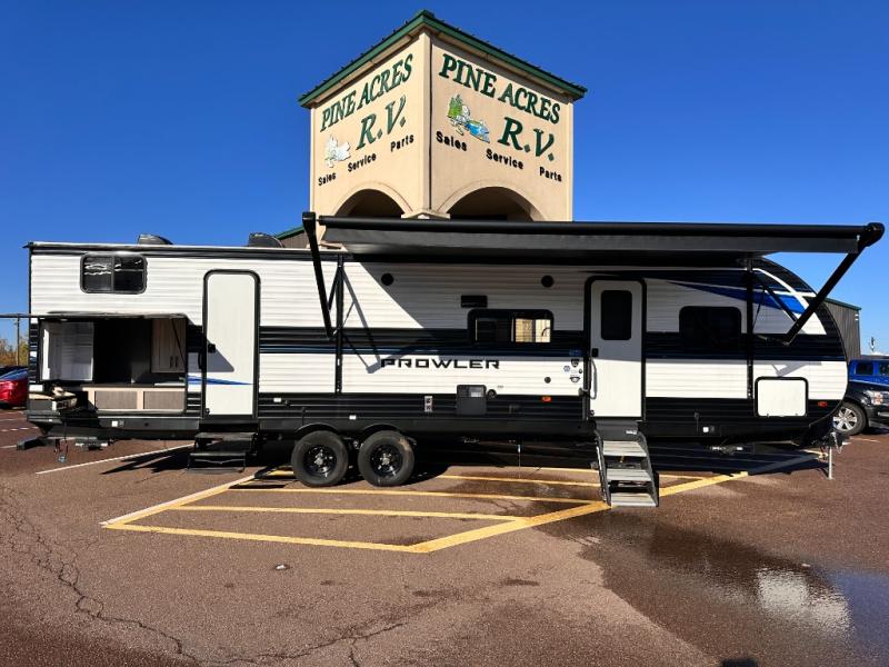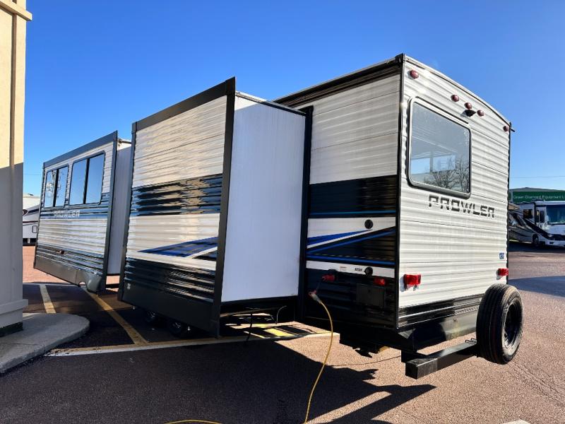 Get ready for comfortable and easy camping with the Prowler travel trailers by Heartland. These models feature durable construction with the performastructure aluminum front wall, the cambered structural steel I-beam frame, and the fully walkable roof. The MEGA bright pass-through storage features 52 cu. ft. of exterior storage with mega sized access doors, LED lights, and a finished interior to keep your gear secure. You'll fall in love with the at-home kitchen the includes Duralast countertops, a residential refrigerator, plus a stainless steel double bowl undermount sink for easy clean-up. These travel trailers also feature panoramic windows, an EZ clean interior, USB charging ports throughout, and many more comforts! Don't let the Prowler travel trailers slip away. Choose your favorite floorplan today!