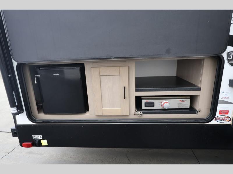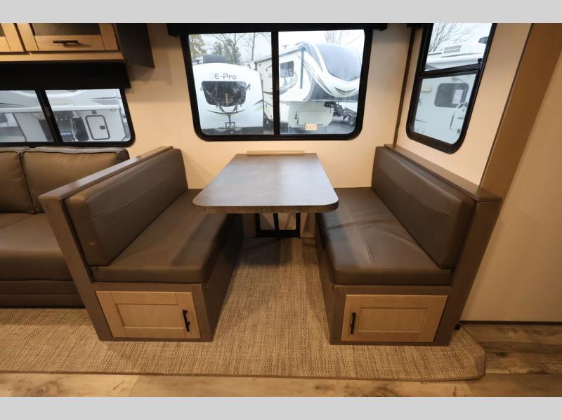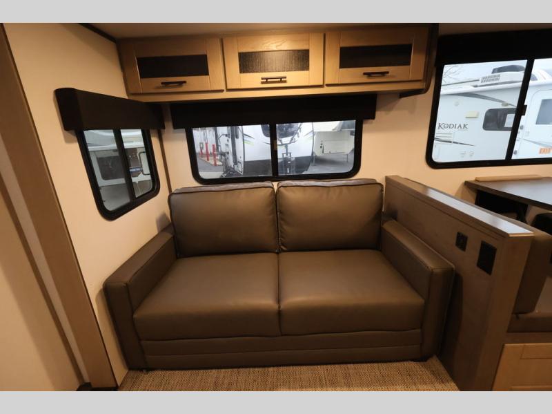 The Heartland Sundance Ultra Lite travel trailers and toy haulers are exceptionally beneficial for a family who is just starting out in the RV lifestyle. Each unit is constructed with an enclosed underbelly, a painted fiberglass front cap with LED lights, a walkable aluminum trussed barrel roof, and a rack and pinion power slide out. You'll have a spare tire and carrier for life's unfortunate mishaps and one unique key for all of your locks with the Keyed Alike system. The interior offers you woven flooring and residential-style furniture for a long-lasting traveling companion. You can use the outside spray port with hose and sprayer for cleaning or hosing down the campsite.