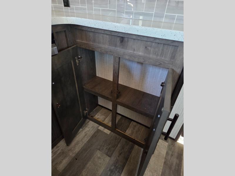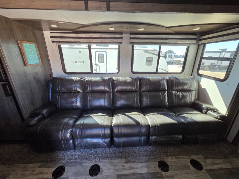 As a Toy Hauler, the TORQUE T322 comes equipped with a large garage area that is perfect for storing motorcycles, ATVs, or other recreational vehicles. The garage can be easily accessed through a ramp door, making it easy to load and unload your toys. Additionally, the garage area can be transformed into a living space with fold-down seating and beds, providing versatility for your camping needs.