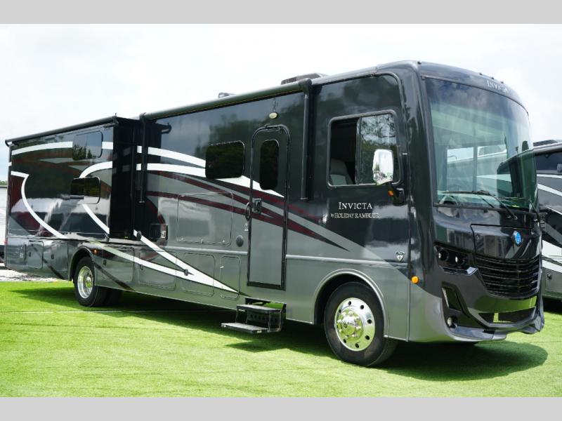 he Holiday Rambler Invicta 36DB offers two full bathrooms, a private king master suite, bunk beds, and exterior entertainment—perfect for families or full-time RVers! Call Today! 352.787.7744