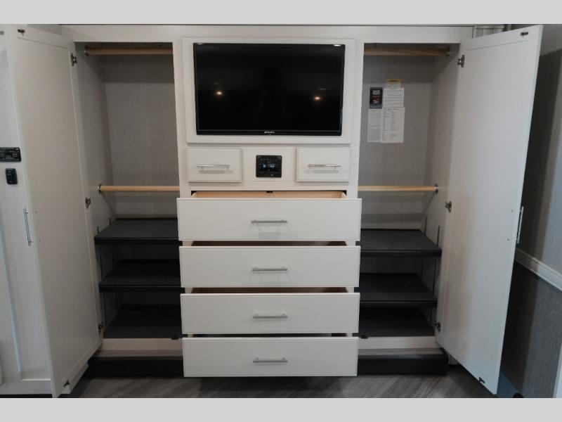 Private Master Suite – Stretch out on a king-size Serenity Series bed with CPAP storage, dresser/wardrobe, and a 32" LED TV.