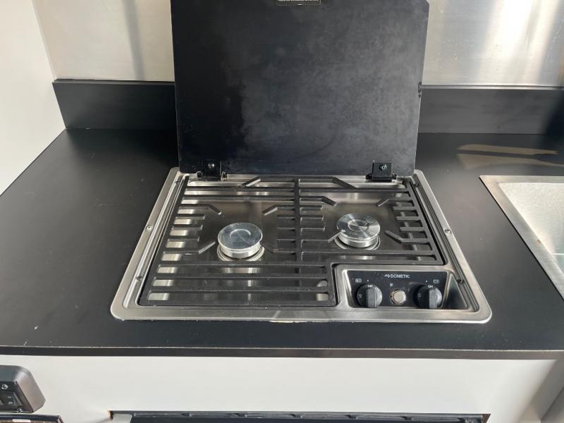 This Flyer expandable toy hauler is the biggest and the best model offered in the Flyer line-up! Not only does this toy hauler provide you with a spacious and versatile interior, but it also gives you a desirable cargo space so that you can bring along some toys for the adventure. This expandable comes standard with one tip-out bed, but you can easily add on the second optional tip-out bed which will add lots of extra room for sleeping and relaxing. The other feature found on this Flyer that is going to make your trips truly effortless is the front kitchen that comes with a two-burner stainless steel cooktop, a 3.1-cubic foot refrigerator, a large farmhouse sink, and an 8.5-gallon fresh water tank. This expandable toy hauler has a dry weight that ranges from 2,475-2,750 LBS and a net carrying capacity that ranges from 2,450-2,725 LBS, so come check it out!