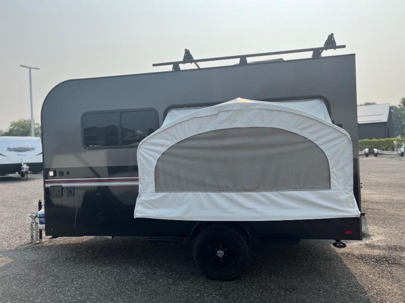 The inTech RV Flyer travel trailers and toy haulers are ready for adventure whenever you are! With the all-aluminum, all-tube cage frame, the Flyer has been built with lightweight and long-lasting materials so that you can enjoy your unit for many, many years. The Flyer has a rugged design so that you can confidently explore new territory and go where traditional RVs cannot. The Flyer has a 2" rear receiver rated for 175 pounds which allows you to bring along your bikes, and the front tongue box is the perfect solution for your storage needs because it is easily accessible and out of the interior. The Flyer also comes with a Bluetooth stereo that has two speakers so that you can always have your best music playing, and the list of optional features is going to entice you to make your Flyer even more exceptional. The optional roof rack will allow you to bring along kayaks, and the optional A/C with heat is definitely going to be tempting to add.
