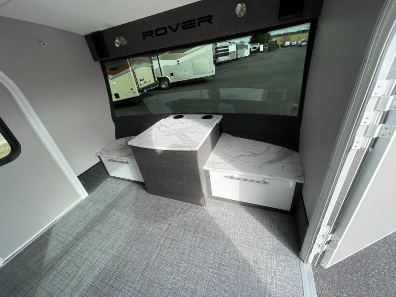 Each Luna teardrop trailer by inTech RV is constructed with an all-aluminum, all-tube, cage frame, a one piece fiberglass roof, plus bubble foil R7 insulation to provide a durable unit made to last. You will always stay cool with the 8,000 BTU A/C and the MaxxAir vent fan. Each model includes an outside kitchen with a 40qt. 12V cooler to store your cold food, a stainless steel cooktop, plus plenty of storage space for all your necessities. Inside, you'll enjoy the Infinity Woven flooring, two tinted windows with shades and screens, a Bluetooth stereo with four speakers and a 32" TV, plus USB ports and outlets to keep your phone and tablet charged. You'll appreciate the 1,775 lbs. to 1,850 lbs. dry weights for easy towing and there are many optional features to choose from, like the Sunseeker awning, the windshield covering, a fireplace, plus more! Choose your favorite layout today