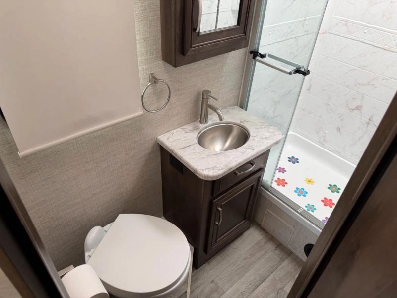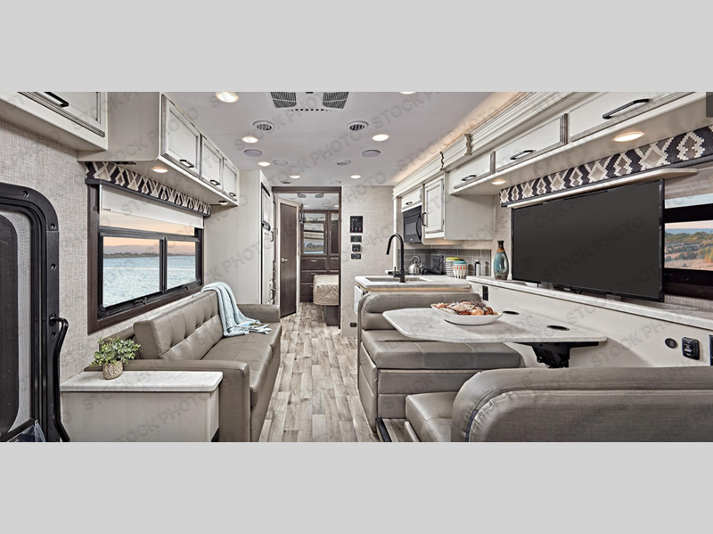 When you enjoy the drive as much as the destination, you know you made the correct choice for your adventures! The driver and passenger seats also swivel to create more seating when you are parked. And the Jayco-exclusive, easy operation legless dinette plus jack-knife sofa give everyone a place to relax and visit. You will also find sleeping space for five to six when you utilize the furniture and you choose the drop down overhead bunk option. The rear corner bedroom gives you a king bed, two wardrobes, and a full bathroom just a few steps away. The kitchen offers full amenities including a countertop extension, and you might like to choose the 12 cu. ft. refrigerator option. Don't forget about the outside entertainment center, and the 39" LED HD Smart Fire TV inside when you want to watch a show, a movie or the big game.