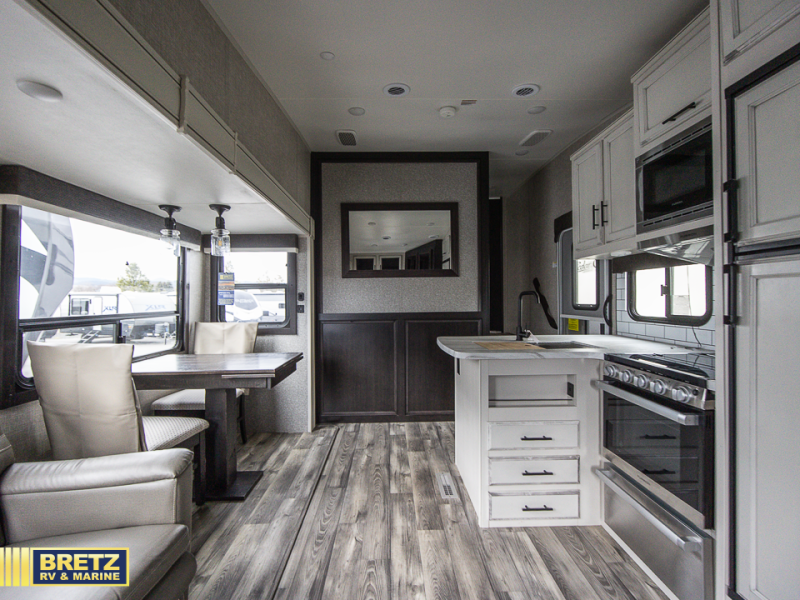 Experience a comfortable tow with every one of these Jayco Eagle HT fifth wheels and travel trailers! They are built with a Stronghold VBL aluminum frame, vacuum bond laminated gel-coated fiberglass exterior walls, and a Magnum Truss roof system with a one piece, seamless DiFlex II material that has been tested as the strongest roof in the industry. The HELIX cooling system comes with an exterior mounted 15,000 BTU "Whisper Quiet" A/C unit, Jayco exclusive insulated dual duct design, directional and closeable A/C vents, and larger air vents with user accessible filters so you can stay cool even on the hottest summer day. With a mandatory Luxury package, you will get handy features like the JAYCOMMAND smart RV system to control your unit at the touch of a finger, an electric auto-leveling so you can set up quick and easy, and blackout roller shades for added privacy. Come find the right one for you today!