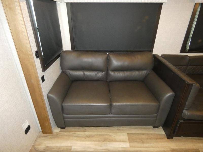 Experience a comfortable tow with every one of these Jayco Eagle HT fifth wheels and travel trailers! They are built with a Stronghold VBL aluminum frame, vacuum bond laminated gel-coated fiberglass exterior walls, and a Magnum Truss roof system with a one piece, seamless DiFlex II material that has been tested as the strongest roof in the industry. The HELIX cooling system comes with an exterior mounted 15,000 BTU "Whisper Quiet" A/C unit, Jayco exclusive insulated dual duct design, directional and closeable A/C vents, and larger air vents with user accessible filters so you can stay cool even on the hottest summer day. With a mandatory Luxury package, you will get handy features like the JAYCOMMAND smart RV system to control your unit at the touch of a finger, an electric auto-leveling so you can set up quick and easy, and blackout roller shades for added privacy. Come find the right one for you today!