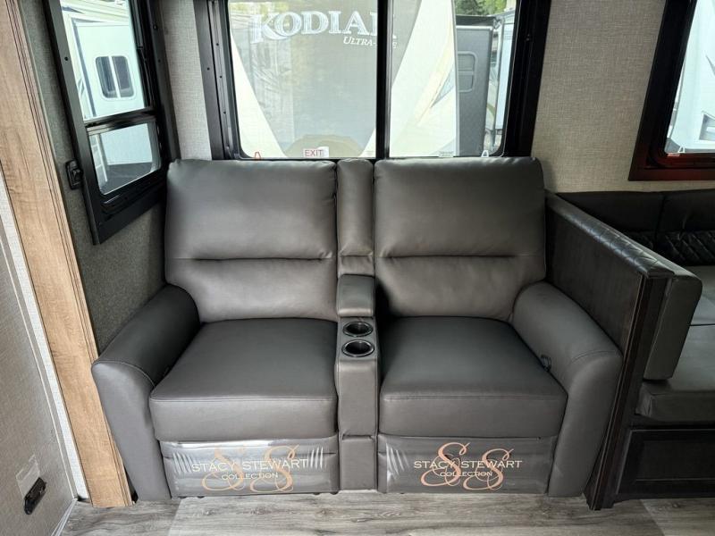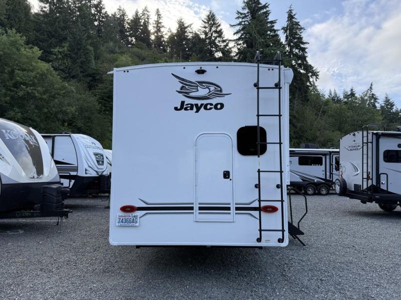 Experience a comfortable tow with every one of these Jayco Eagle HT fifth wheels and travel trailers! They are built with a Stronghold VBL aluminum frame, vacuum bond laminated gel-coated fiberglass exterior walls, and a Magnum Truss roof system with a one piece, seamless DiFlex II material that has been tested as the strongest roof in the industry. The HELIX cooling system comes with an exterior mounted 15,000 BTU "Whisper Quiet" A/C unit, Jayco exclusive insulated dual duct design, directional and closeable A/C vents, and larger air vents with user accessible filters so you can stay cool even on the hottest summer day. With a mandatory Luxury package, you will get handy features like the JAYCOMMAND smart RV system to control your unit at the touch of a finger, an electric auto-leveling so you can set up quick and easy, and blackout roller shades for added privacy. Come find the right one for you today!