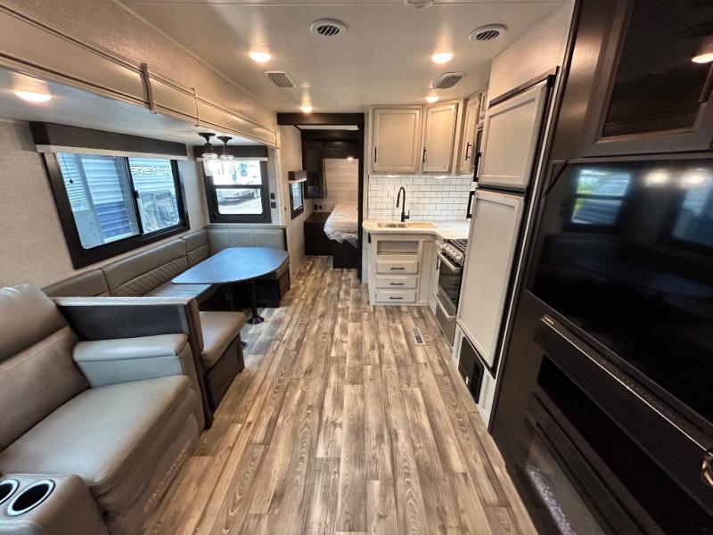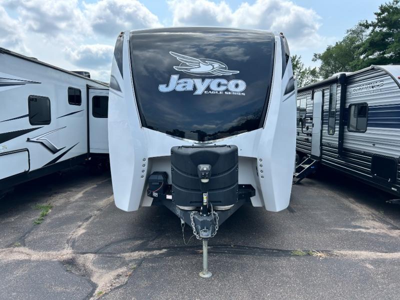 Experience a comfortable tow with every one of these Jayco Eagle HT fifth wheels and travel trailers! They are built with a Stronghold VBL aluminum frame, vacuum bond laminated gel-coated fiberglass exterior walls, and a Magnum Truss roof system with a one piece, seamless DiFlex II material that has been tested as the strongest roof in the industry. The HELIX cooling system comes with an exterior mounted 15,000 BTU "Whisper Quiet" A/C unit, Jayco exclusive insulated dual duct design, directional and closeable A/C vents, and larger air vents with user accessible filters so you can stay cool even on the hottest summer day. With a mandatory Luxury package, you will get handy features like the JAYCOMMAND smart RV system to control your unit at the touch of a finger, an electric auto-leveling so you can set up quick and easy, and blackout roller shades for added privacy. Come find the right one for you today!