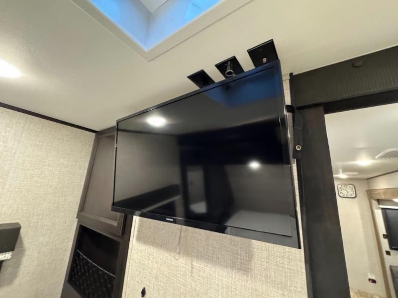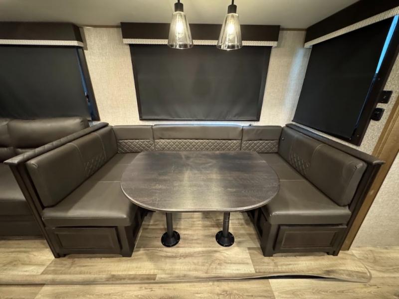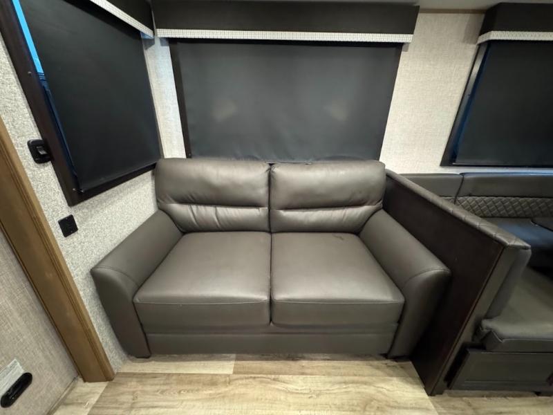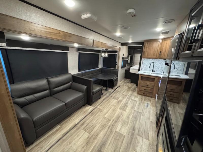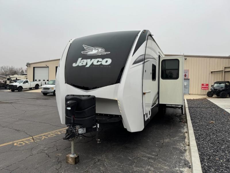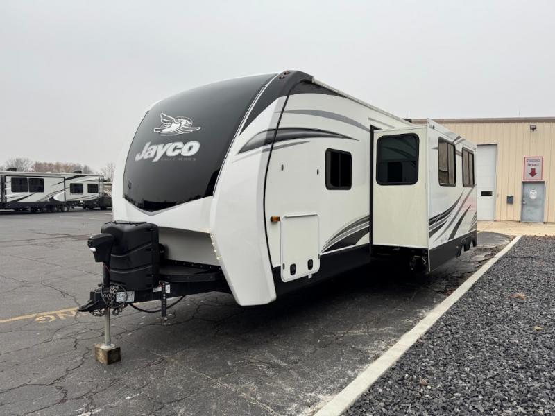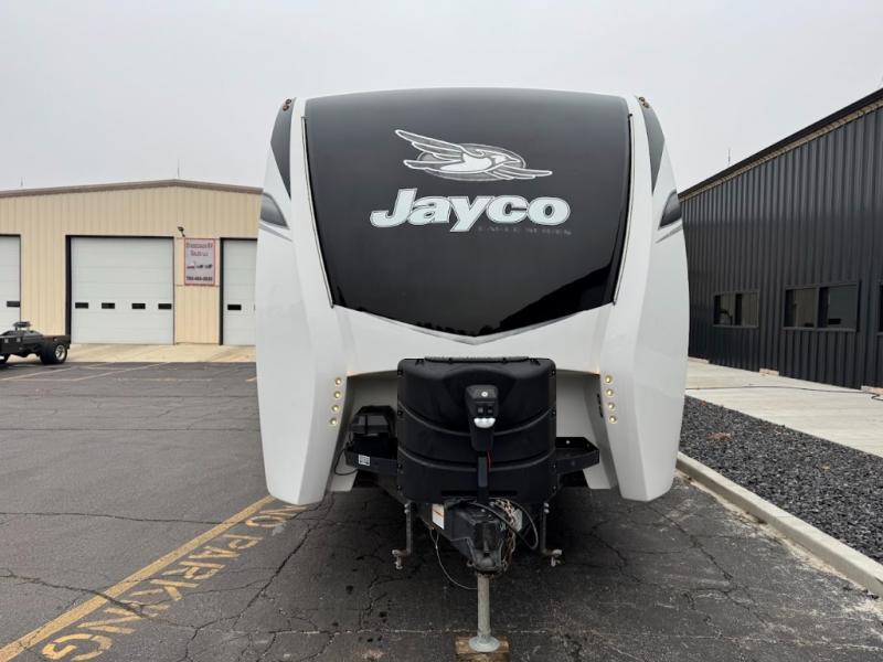 Experience a comfortable tow with every one of these Jayco Eagle HT fifth wheels and travel trailers! They are built with a Stronghold VBL aluminum frame, vacuum bond laminated gel-coated fiberglass exterior walls, and a Magnum Truss roof system with a one piece, seamless DiFlex II material that has been tested as the strongest roof in the industry. The HELIX cooling system comes with an exterior mounted 15,000 BTU "Whisper Quiet" A/C unit, Jayco exclusive insulated dual duct design, directional and closeable A/C vents, and larger air vents with user accessible filters so you can stay cool even on the hottest summer day. With a mandatory Luxury package, you will get handy features like the JAYCOMMAND smart RV system to control your unit at the touch of a finger, an electric auto-leveling so you can set up quick and easy, and blackout roller shades for added privacy. Come find the right one for you today!