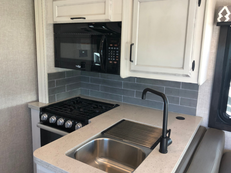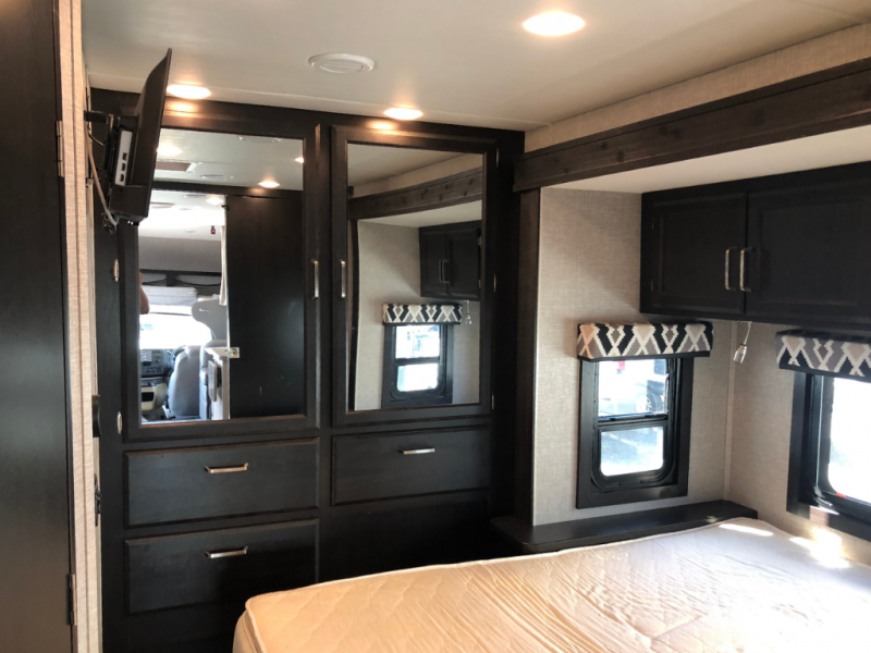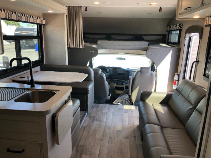 Trips across state lines just got sweeter in this motorhome for five to six. The swivel captain's seats can become a part of the living area once you park, and your guests can get comfortable on the booth dinette or jackknife sofa. There is a cab-over bunk the kids will love, and the LED HD Smart Fire TV will allow you to enjoy movies. The chef of your group can prepare meals on the Furrion all-in-one cooktop and oven, and leftovers can go in the 8 cu. ft. flush-mount double door refrigerator. You will feel right at home in the bedroom suite with its king bed slide out, large wardrobe, and LED TV. Get started on your getaway today in this cozy Class C motorhome!