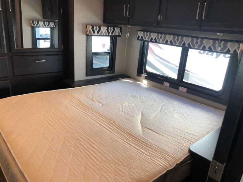 With any Greyhawk Class C gas motorhome by Jayco you will experience smooth sailing thanks to the JRIDE PLUS that comes with Koni shock absorbers, a computer-balanced driveshaft, Hellwig helper springs, and more. The Ford E-450 chassis with a 7.3L V8 350 HP engine will power your excursions, and you'll appreciate the added safety features for your peace of mind. Each model features a Sony infotainment center with Apple CarPlay and Android Auto, backup and side-view cameras, and a tire pressure monitor system the driver is sure to appreciate. Durable construction begins with Stronghold VBL roof, floor and sidewalls, bead-foam insulation, and a one-piece seamless fiberglass front cap. Head inside to find blackout night roller shades, LED-lit pressed countertops, an 84" interior ceiling height, and hardwood cabinet doors and drawers.