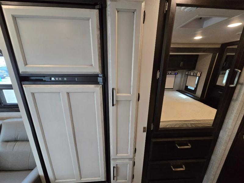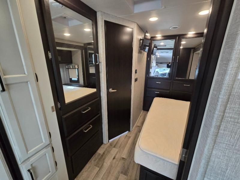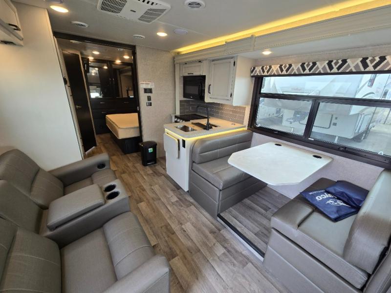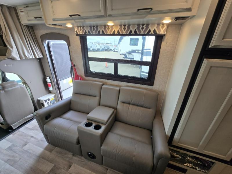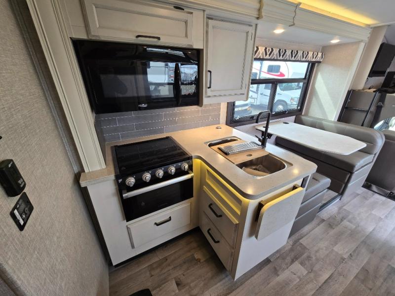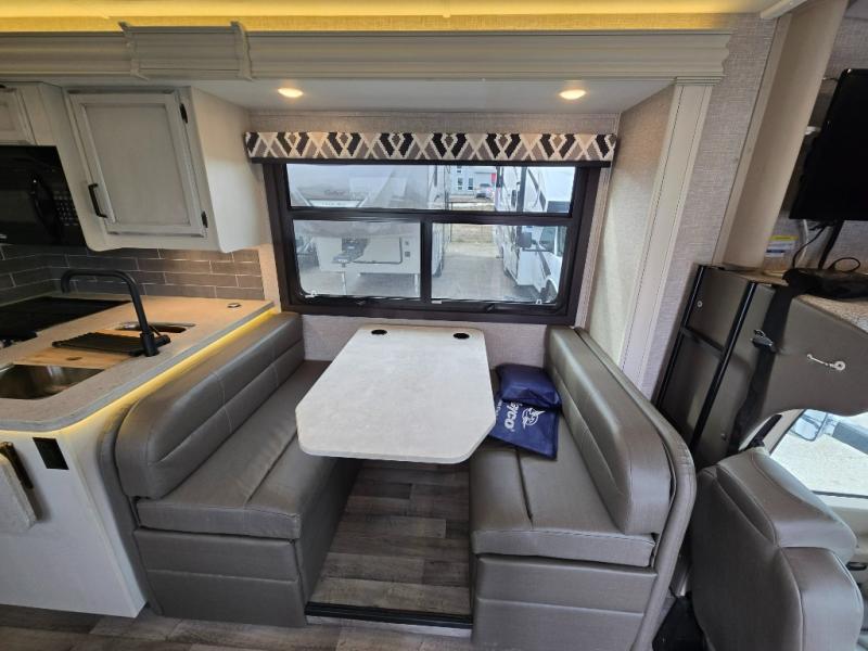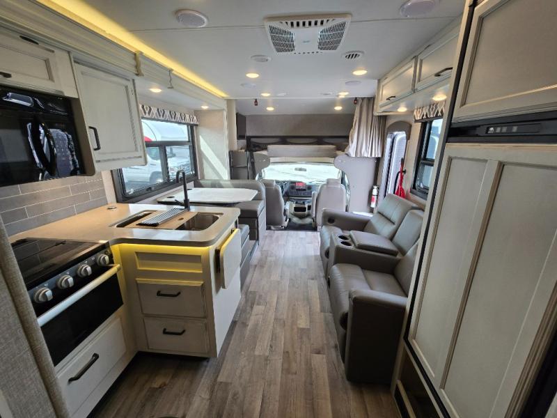 Trips across state lines just got sweeter in this motorhome for five to six. The swivel captain's seats can become a part of the living area once you park, and your guests can get comfortable on the booth dinette or jackknife sofa. There is a cab-over bunk the kids will love, and the LED HD Smart Fire TV will allow you to enjoy movies. The chef of your group can prepare meals on the Furrion all-in-one cooktop and oven, and leftovers can go in the 8 cu. ft. flush-mount double door refrigerator. You will feel right at home in the bedroom suite with its king bed slide out, large wardrobe, and LED TV. Get started on your getaway today in this cozy Class C motorhome!