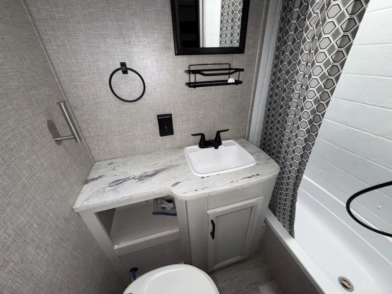 With any Jay Flight SLX 8 travel trailer by Jayco, you will have a durable foundation with l-Class cambered structural steel l-beams, a fully-integrated A-frame, seamless roof material and a Magnum Truss Roof System with plywood decking for a 50% stronger roof than any other in the industry. Also included are Goodyear Endurance tires made in the USA, and a front diamond plate to protect against road debris. Inside, you will love the fresh interior design, the solid hardwood cabinet doors, the 81-inch tall ceiling, the energy-saving LED lighting, and the storage. Whether you are looking for an RV for a small or large group, you will find a Jay Flight SLX 8 to fit your camping lifestyle!