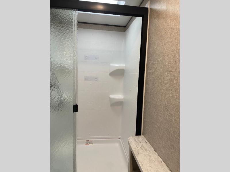 A lot of fun can be had in this Jay Flight travel trailer! There are double-size bunks to add to the sleeping capacity without taking up too much interior space, and the jackknife sofa is a handy piece of furniture that serves as a lounge area and a bed. The queen-size bed is hidden away in the private bedroom, and the bedroom also contains the second exterior entry door for you to come and go as you please. A large slide makes the main living area spacious, so you can work freely in the kitchen without standing on top of those who are sitting on the furniture. As the chef, you can also choose to just work outside at the outdoor kitchen if that suits you better.
