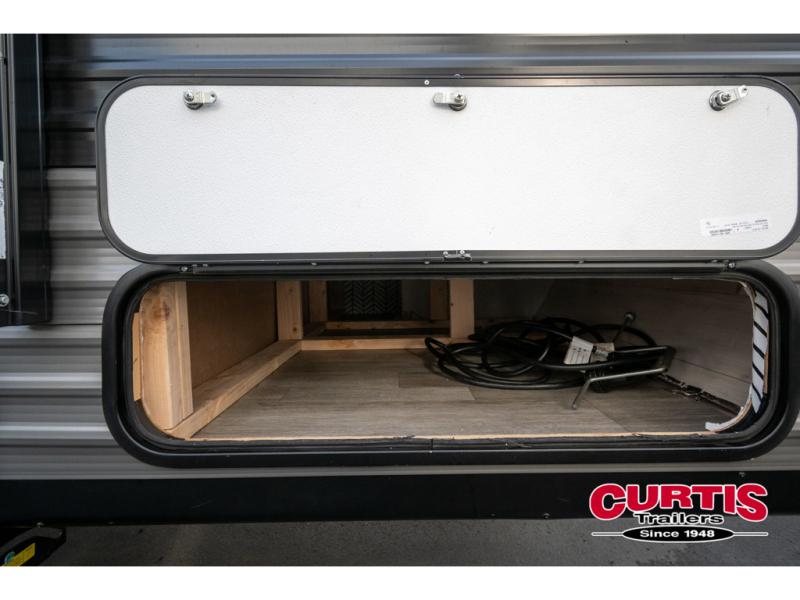 The Jayco Jay Flight SLX 7 travel trailer is quite easy to own because it weighs less than 3,500 pounds, and it comes with a single axle. Built on a fully integrated A-frame with galvanized-steel, impact-resistant wheel wells, the Jay Flight SLX 7 has quality at its very foundation. That quality continues on to the electric self-adjusting brakes, easy-lube hubs, Magnum Truss roof system, friction-hinge entry door with window, and LP quick connect. Some of what the mandatory Customer Value Package includes are two stabilizer jacks with sand pads, American-made Goodyear Endurance tires, Keyed-Alike entry and baggage doors, and JaySMART LED lighting. Buying your trailer in the East versus the West will determine which optional package is available to you. The East offers an optional STX Edition, and the West offers an optional Baja Package. Both packages come with a 30LB LP bottle, a large fresh water tank, Goodyear off-road tires, an enclosed underbelly, a double entry step, four stabilizer jacks, and a deluxe graphics package. Specific to the STX Edition, you will find a wide-stance axle, aluminum rims, a power tongue jack, and powder-coated wheel fenders while the Baja Package offers you a flipped axle and black sidewall skirt.
