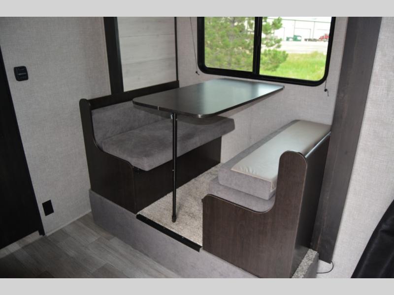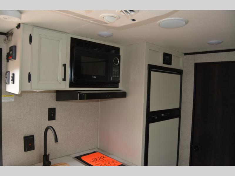 You and your two favorite people can take this Jay Flight SLX 7 travel trailer out for some fun! There is an RV queen bed up at the front, and there are also overhead cabinets and a wardrobe next to the bed for easy storage. The wall-mounted 8,000 BTU air conditioner is right next to the bed, and there is a privacy curtain that you can draw to create a semi-private bedroom. The booth dinette rests on a single slide, so there is more floor space as you work in the kitchen. The rear bathroom gives you space and privacy, and it also offers you a linen closet to store your towels. For other storing needs, you can use the 6-cubic foot refrigerator and the exterior storage compartments.