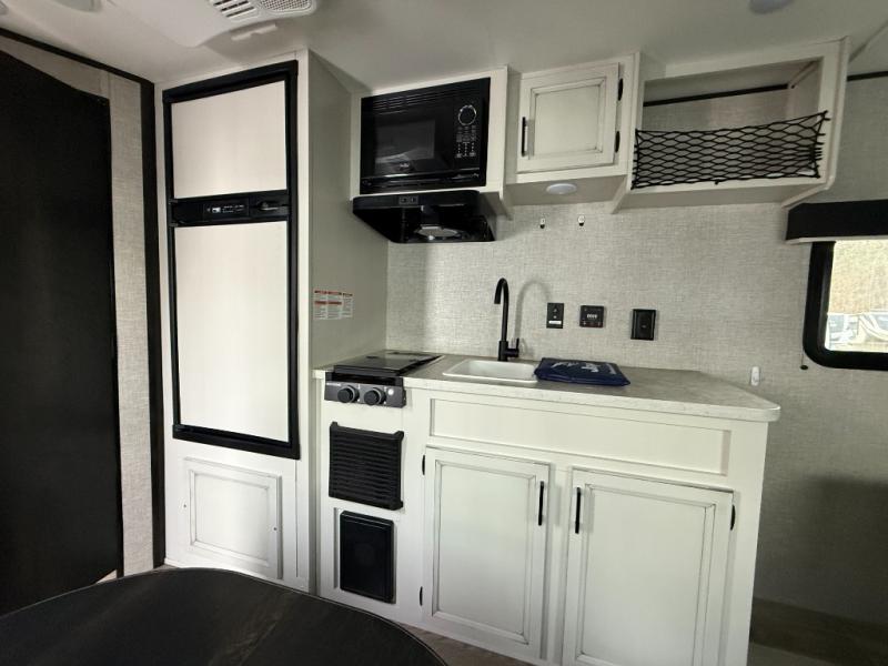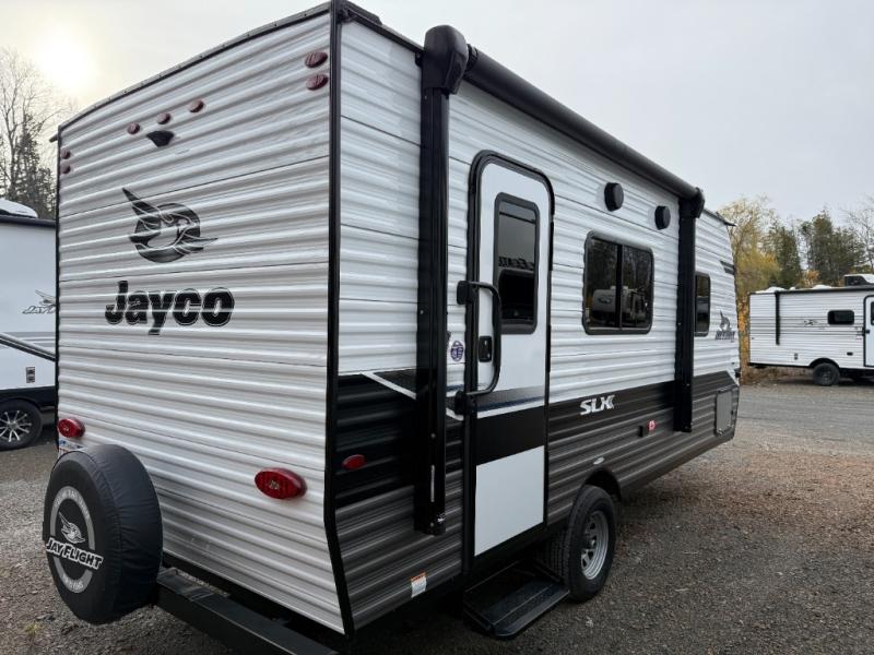 Gain some freedom to travel with this Jay Flight SLX 7 travel trailer! You can rest comfortably each night on an RV queen bed that can be sectioned off into a semi-private bedroom with a privacy curtain. There is a private bathroom with a tub/shower and toilet so that you can stay clean, and the kitchen has a two-burner range to keep you fed. Outside, there is a 10' power awning to protect you from too much sun, and you can also store extra gear in the exterior storage compartment.