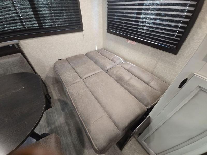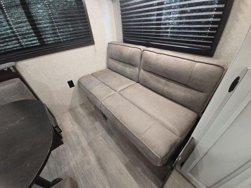 Looking for a couples trailer or a manageable RV that will sleep four when you utilize the furniture as sleeping space? Look no further than this SLX 8 to find a queen bed up front for two, and the jack-knife sofa plus the booth dinette provide sleeping space for two more. The cook will enjoy making meals with everything nearby to keep everyone fed, plus the refrigerator and pantry offer food storage. Everyone can get cleaned up in the full bathroom either in the morning or before bedtime, and the bathroom will come in handy during those night time trips. The outside offers a 16' power awning to relax under as you plan your activities, and there is storage for camping games, charcoal and such along the exterior.