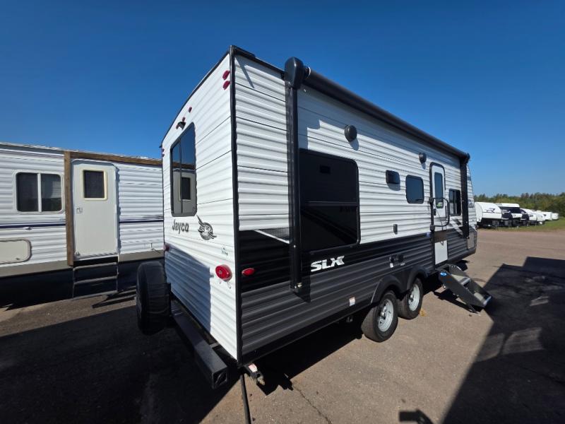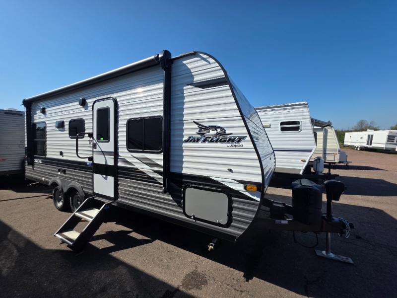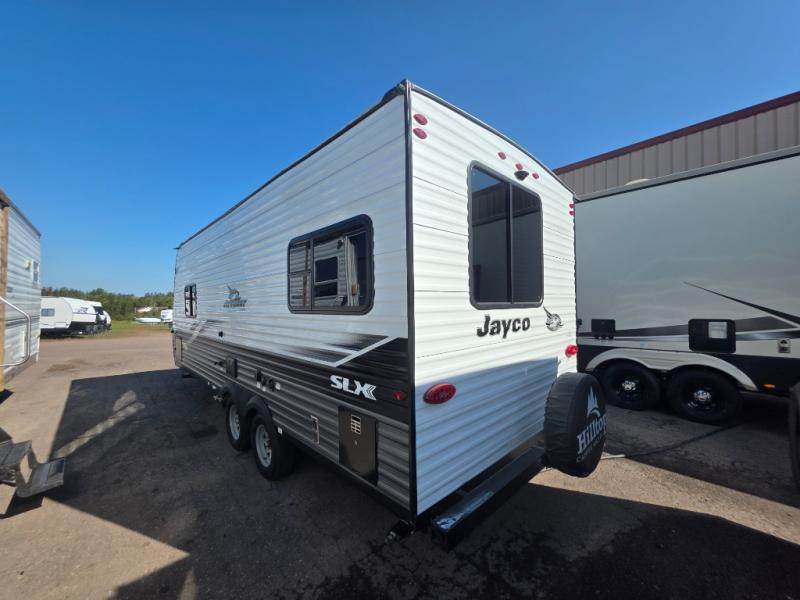 With any Jay Flight SLX 8 travel trailer by Jayco, you will have a durable foundation with l-Class cambered structural steel l-beams, a fully-integrated A-frame, seamless roof material and a Magnum Truss Roof System with plywood decking for a 50% stronger roof than any other in the industry. Also included are Goodyear Endurance tires made in the USA, and a front diamond plate to protect against road debris. Inside, you will love the fresh interior design, the solid hardwood cabinet doors, the 81-inch tall ceiling, the energy-saving LED lighting, and the storage. Whether you are looking for an RV for a small or large group, you will find a Jay Flight SLX 8 to fit your camping lifestyle!