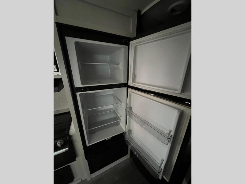 Calling larger camping groups, this trailer is waiting for your adventures! With sleeping space for eight, everyone can join you. The double size bunks offer sleeping for four, plus there is a curtain to close for privacy. The full bathroom will keep everyone clean, and the full kitchen amenities will keep everyone fed. There is an outside kitchen to use when you want to enjoy the outdoors while cooking. You will find exterior storage and a 16' power awning with LED lights that offers a covered outdoor living area when you add your camping chairs. And the front bedroom offers dual entry and wardrobes plus a queen bed, and the U-shaped dinette slide gives you extra floor space, a dining area, and sleeping space for two.