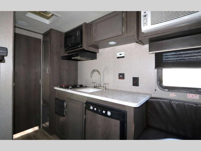 Having this Jay Flight SLX Western Edition travel trailer will make all of your travels much easier! This model's light weight will make it easy to hook up and go. You will find it refreshing to wake up and shower in your own private bathroom, and after you are clean, you can grab some cereal from the kitchen pantry. If you want something more hearty, just use the two-burner range to prepare some bacon or eggs. The 3 cubic foot refrigerator will allow you to have some cold orange juice or milk to go with your breakfast, and you can sit down at the booth dinette to enjoy everything.
