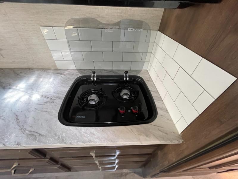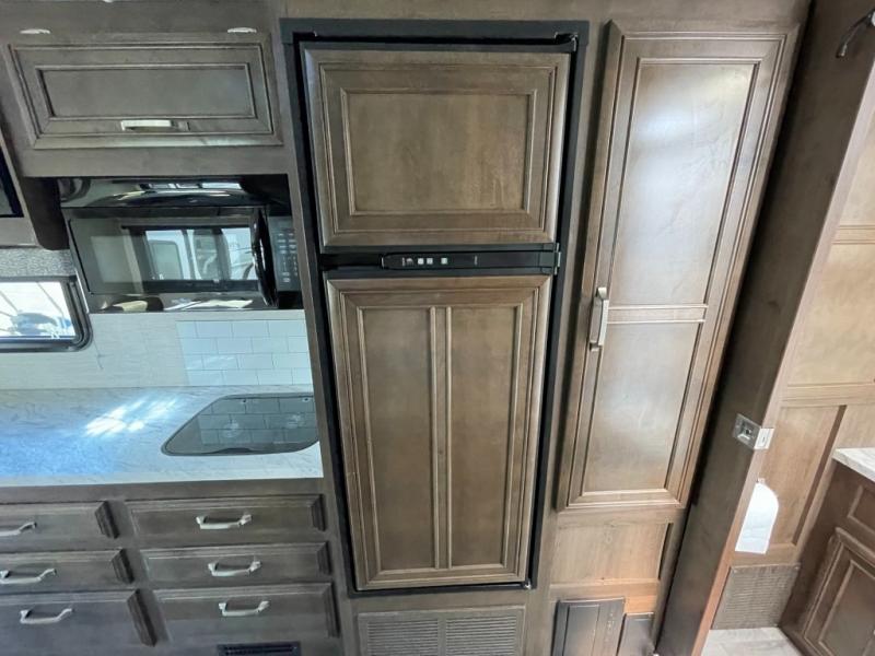 Pack up and head to the antique show for the weekend in this versatile coach. There is a sofa within the full-wall slide that includes a queen Murphy bed to sleep on a night, and if you have any friends tag along they can sleep on the booth dinette or cab-over bunk. The full rear bath includes a 24" x 32" shower, a stainless steel sink, plus a large bath wardrobe to store clean towels and toiletries. Head to the kitchen to prepare lunch on the Suburban two burner drop-in cooktop, and you'll appreciate the large pantry for dry goods and snacks. You can choose the optional theater seating in place of the booth dinette, or the optional front entertainment center in place of the cab-over bunk if you're not needing the additional sleeping space.