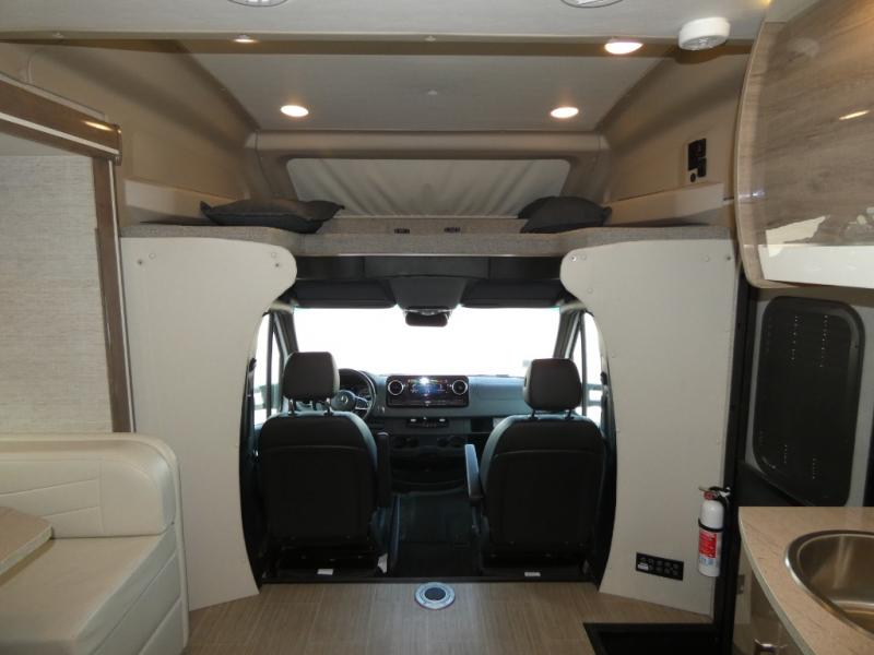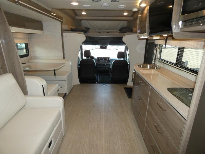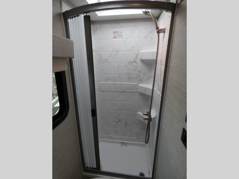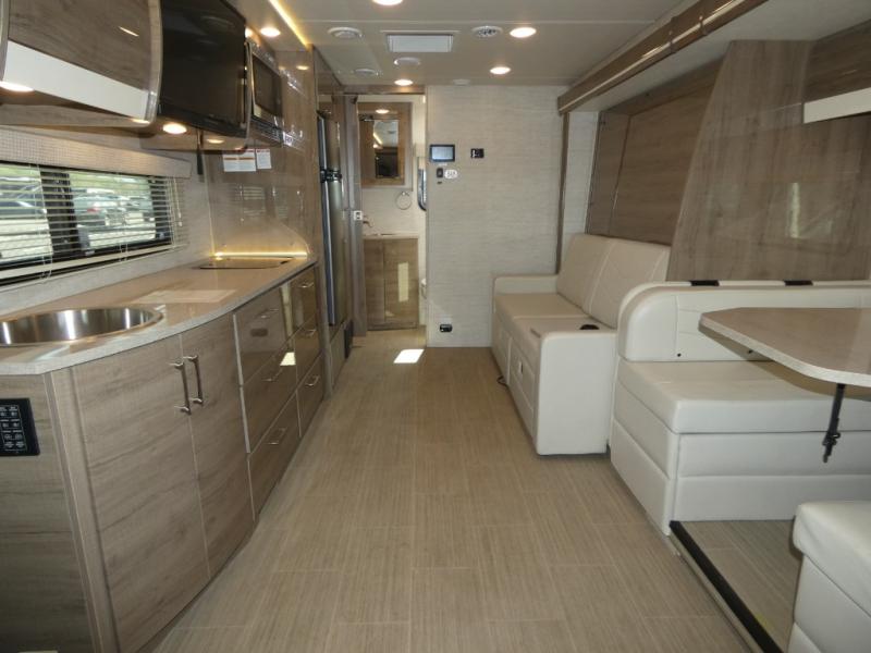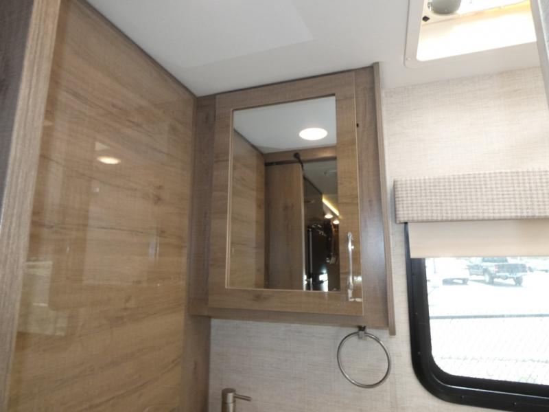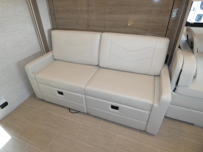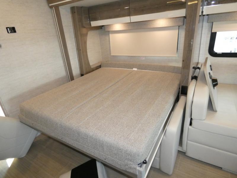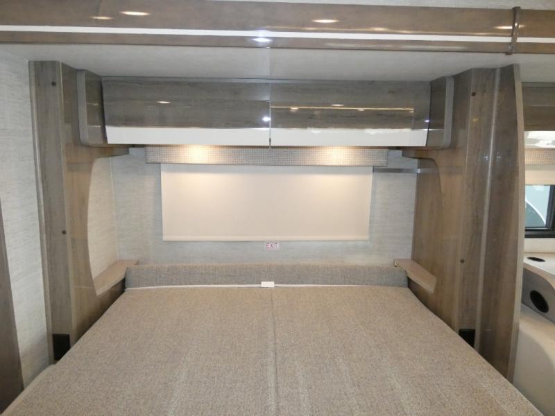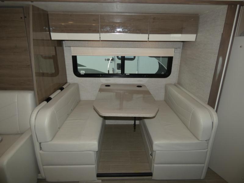 Travel the countryside for new scenery, adventures and memories in this motorhome that offers a versatile living and sleeping area, a booth dinette for dining and relaxing, plus a cab-over bunk for overnight guests. The queen Murphy bed offers a comfortable place to sleep after you have enjoyed the sofa during the daytime. The slide out gives you more floor space to move from the front swivel driver and passenger seats to the rear full bathroom with a shower and a wardrobe, plus a window for some natural lighting. The galley kitchen comes complete with a convection microwave and two-burner cooktop, plus a large pantry for dry goods and a 6 cu. ft. refrigerator. And there are options to choose from to enhance this already luxurious and fully-featured coach such as theater seating in place of the dinette and/or a B-Plus front cap with overhead storage instead of the cab-over bunk.