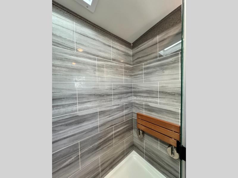 With any North Point fifth wheel by Jayco you begin with a strong foundation with a custom frame, designed and sized specifically to best support each unit. Constructed with Stronghold VBL™ aluminum framed, vacuum bond laminated walls and the Magnum Truss™ XL6™ roof system with a one-piece, seamless DiFlex II material which is the strongest tested roof in the industry. The 5-Star Handling package is included with Goodyear Endurance tires made in the USA, a MORryde rubber pin box, Dexter axles with Nev-R-Adjust brakes, MORryde CRE-3000 rubberized suspension and wet bolt fasteners and bronze bushings. The interior has handcrafted hardwood glazed doors, drawers and trim, vinyl flooring throughout made in the USA including on slide out floors, a residential bathroom backsplash and vessel bowl sink in the main bathroom, plus so much more you just have to see one to believe it all!