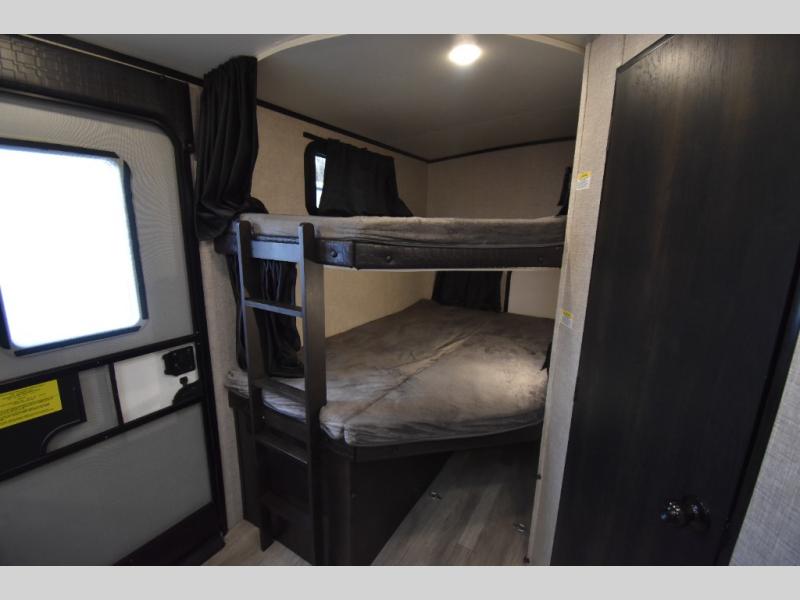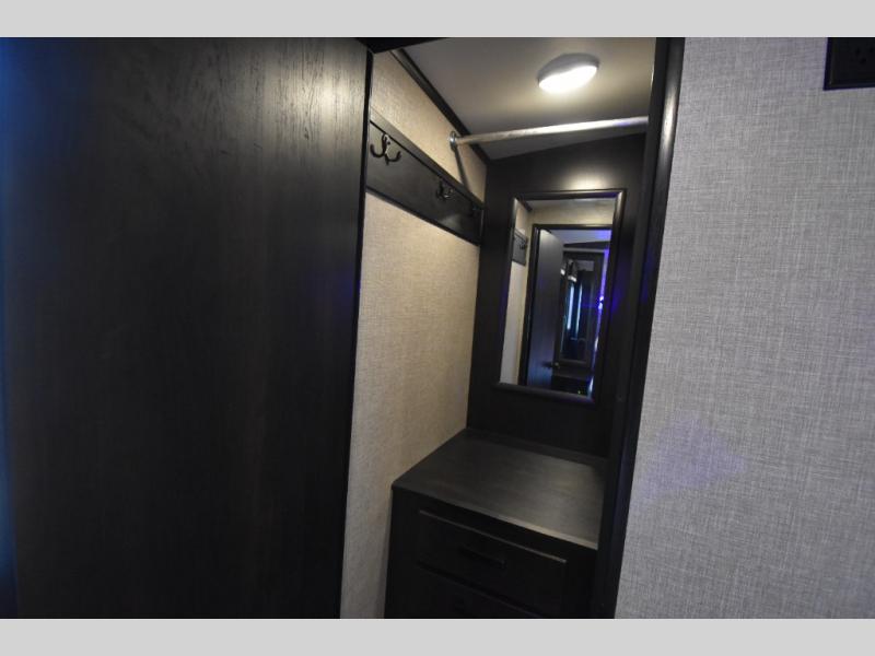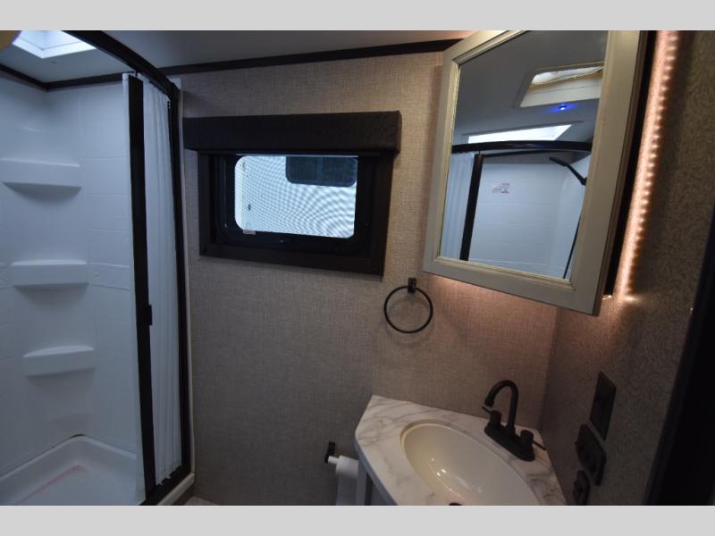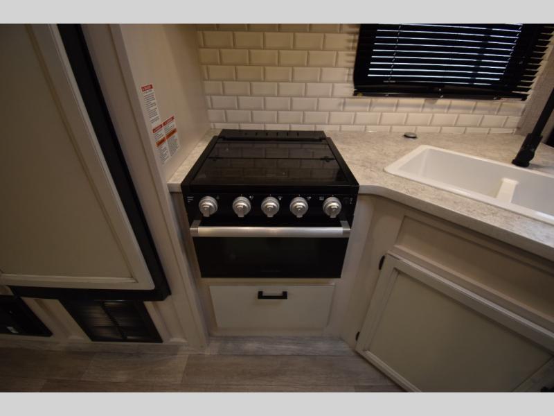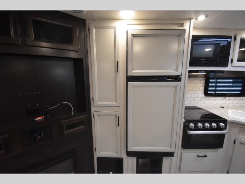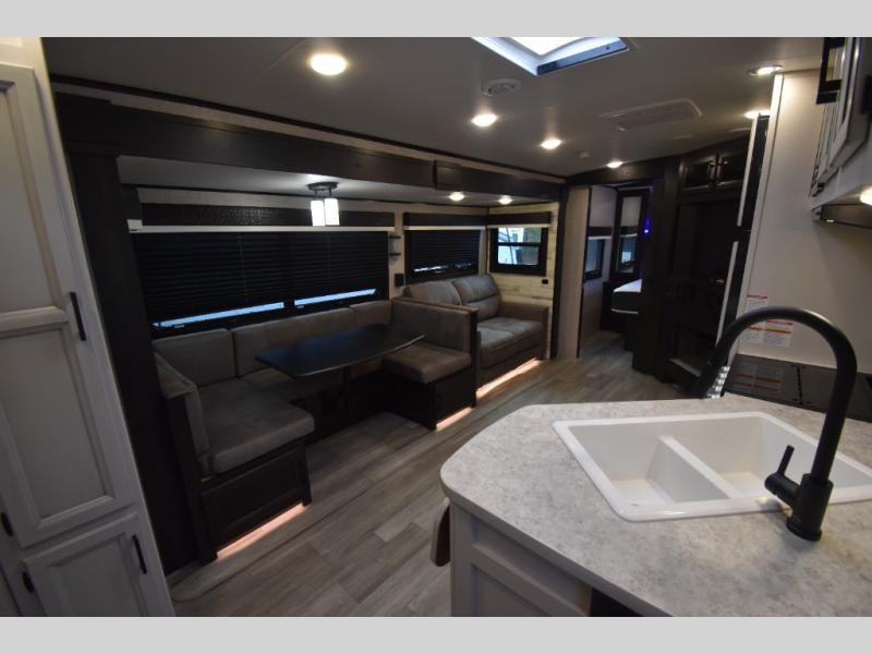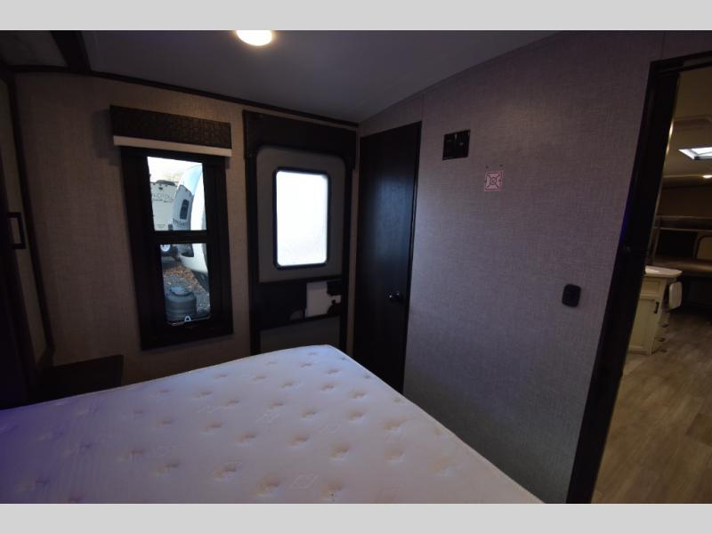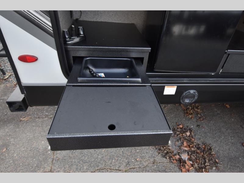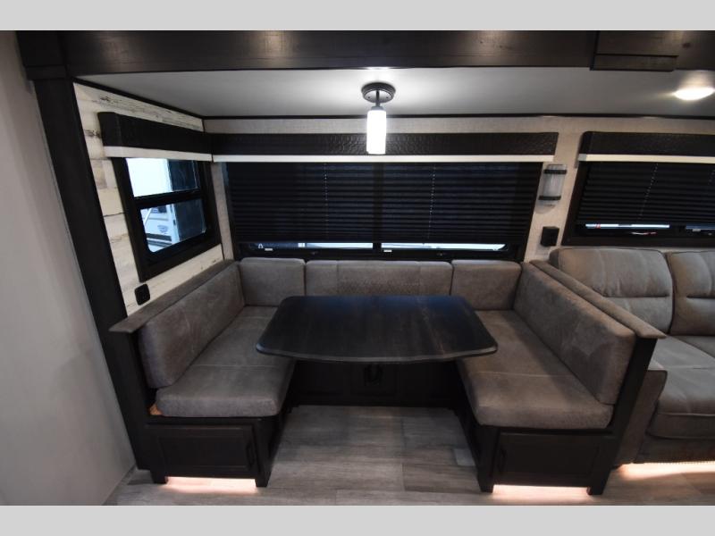 Bring the whole family along in this spacious travel trailer. You will love visiting outside while the chef of your group prepares breakfast on the outdoor kitchen, plus there is a 21' power awning to shade you from the sun. If the weather isn't cooperating, head inside and dine around the U-shaped dinette. There is also a tri-fold sofa here, a fireplace, and an LED TV for movies. This model conveniently has dual entry doors so you can enter in through the main living area, or into the front private bedroom. The bedroom also features a queen bed, dual wardrobes, and a closet to keep your items organized. Start camping today!