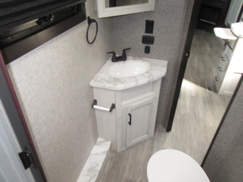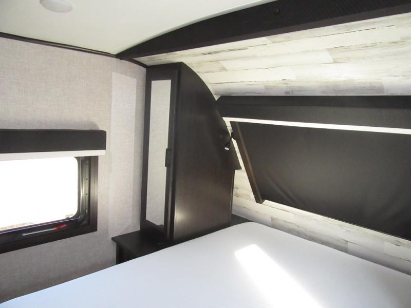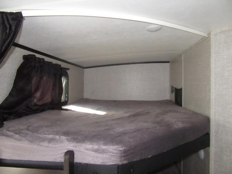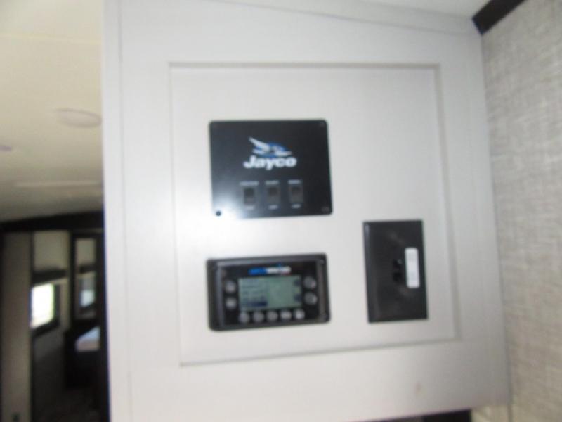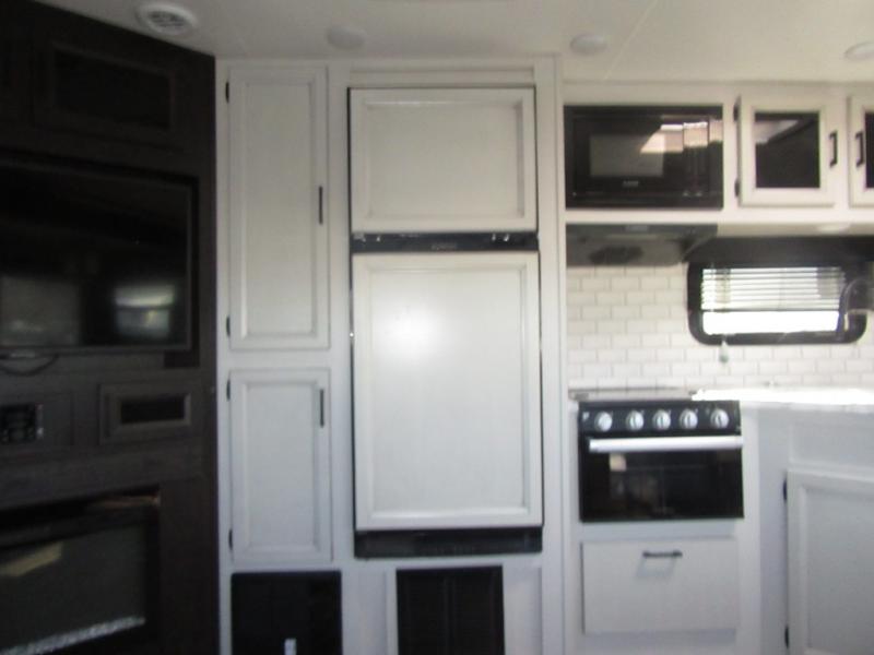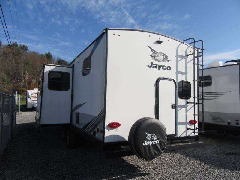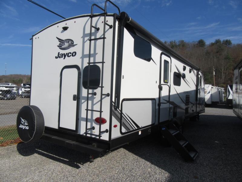 The lightweight White Hawk travel trailers by Jayco will blow you away with their roomy interiors, luxurious amenities, and durable construction. The Magnum Truss Roof System can withstand 50% more weight than the competition, and the Stronghold VBL lamination is the lightest, yet strongest in the industry. Each model includes the JAYCOMMAND "Smart RV" system with a tire pressure monitor system, plus American-made Goodyear tires for maximum durability and carrying capacity. You will love the sleek look of the front molded fiberglass cap with an automotive windshield and blue LED accent lighting, along with the frameless windows and automotive-style aluminum rims. The White Hawk travel trailers also include an arched interior ceiling, a kitchen skylight with a shade, residential vinyl flooring with cold crack resistance, and an electric fireplace.