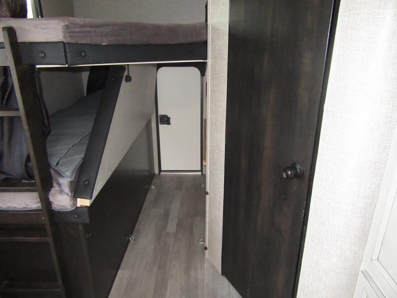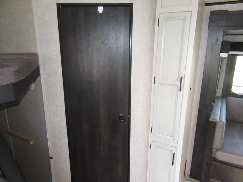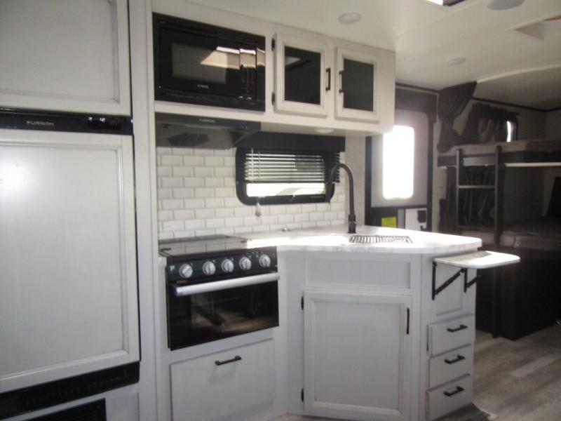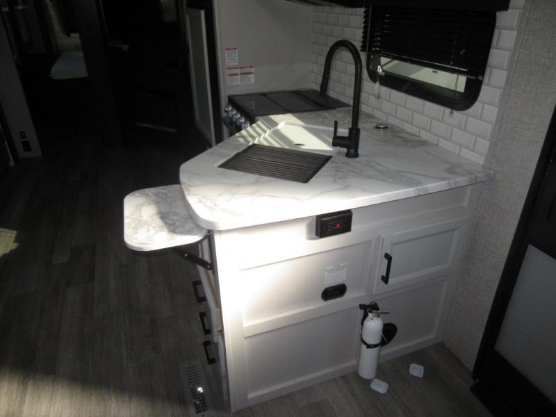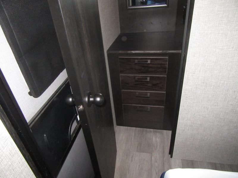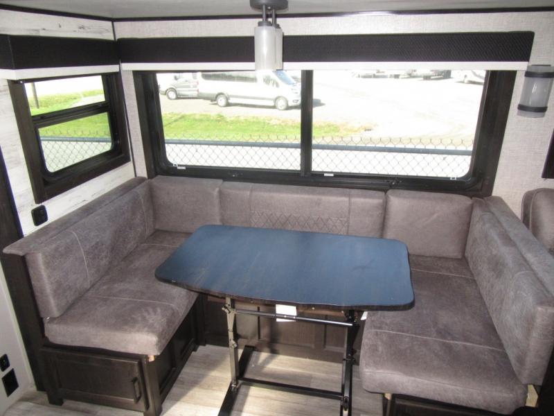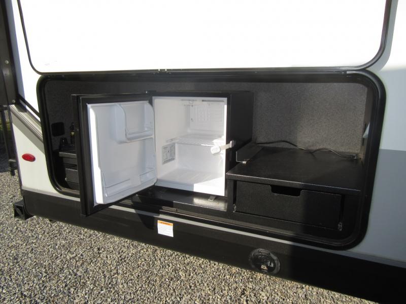 Bring the whole family along in this spacious travel trailer. You will love visiting outside while the chef of your group prepares breakfast on the outdoor kitchen, plus there is a 21' power awning to shade you from the sun. If the weather isn't cooperating, head inside and dine around the U-shaped dinette. There is also a tri-fold sofa here, a fireplace, and an LED TV for movies. This model conveniently has dual entry doors so you can enter in through the main living area, or into the front private bedroom. The bedroom also features a queen bed, dual wardrobes, and a closet to keep your items organized. Start camping today!