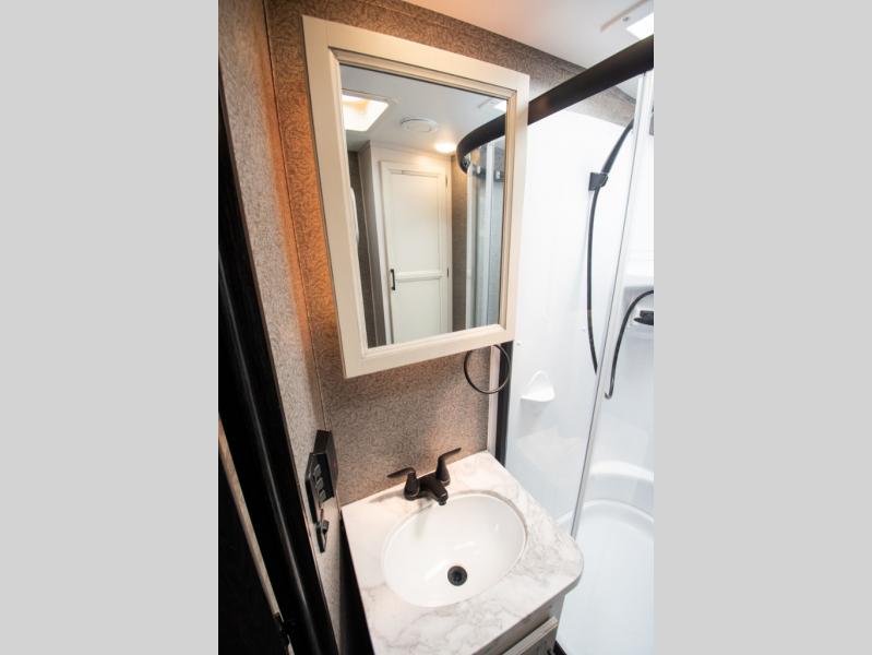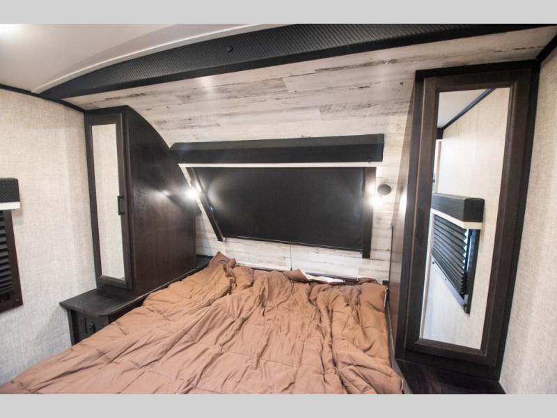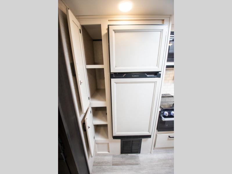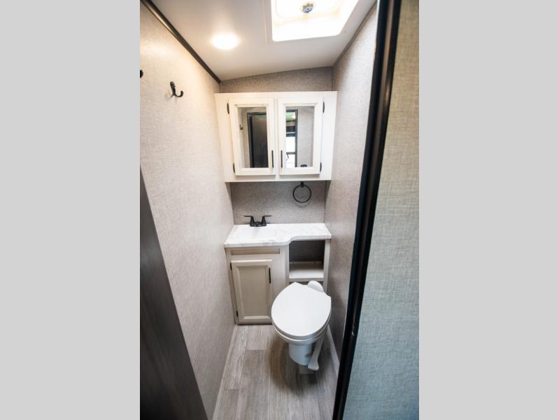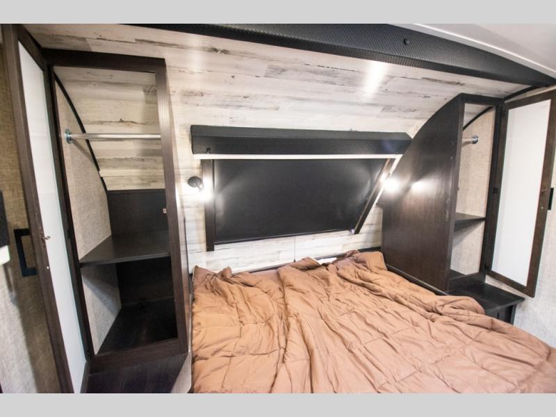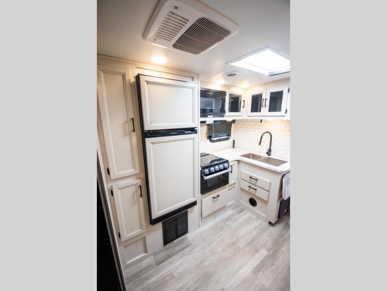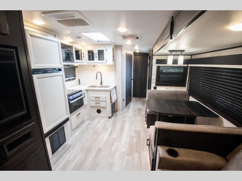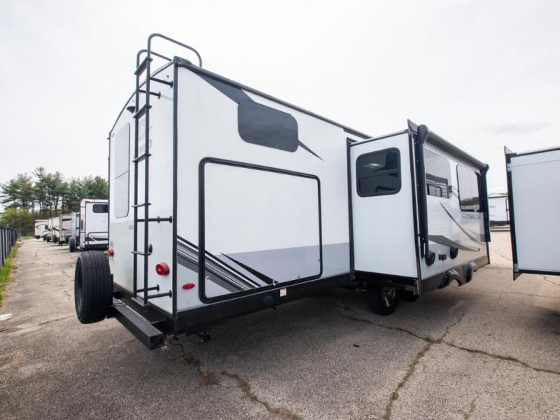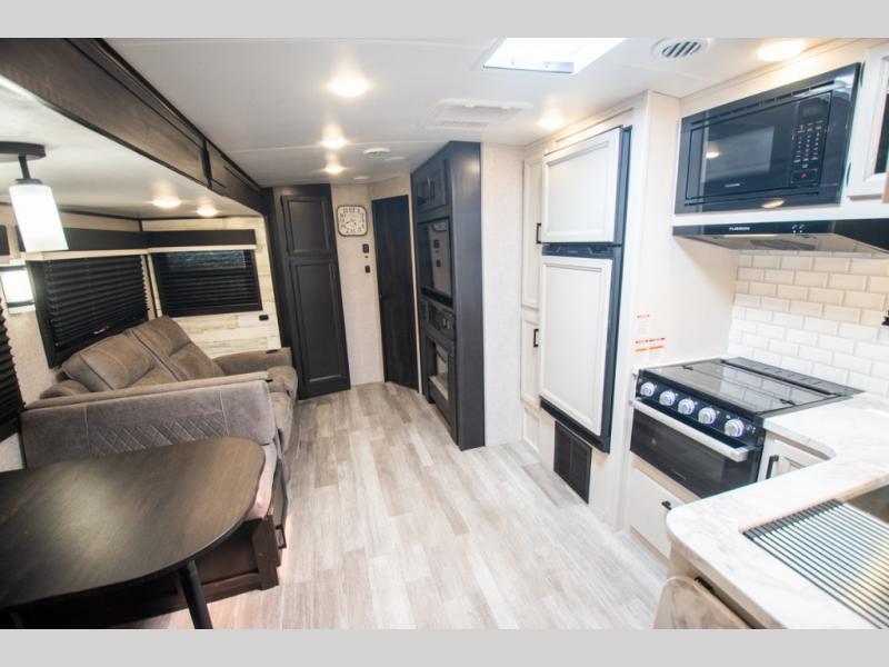 The lightweight White Hawk travel trailers by Jayco will blow you away with their roomy interiors, luxurious amenities, and durable construction. The Magnum Truss Roof System can withstand 50% more weight than the competition, and the Stronghold VBL lamination is the lightest, yet strongest in the industry. Each model includes the JAYCOMMAND "Smart RV" system with a tire pressure monitor system, plus American-made Goodyear tires for maximum durability and carrying capacity. You will love the sleek look of the front molded fiberglass cap with an automotive windshield and blue LED accent lighting, along with the frameless windows and automotive-style aluminum rims. The White Hawk travel trailers also include an arched interior ceiling, a kitchen skylight with a shade, residential vinyl flooring with cold crack resistance, and an electric fireplace.