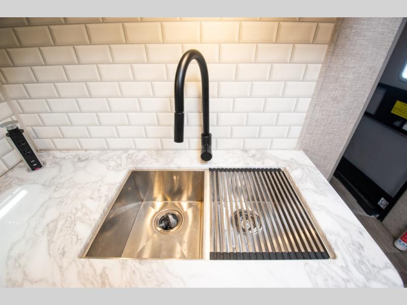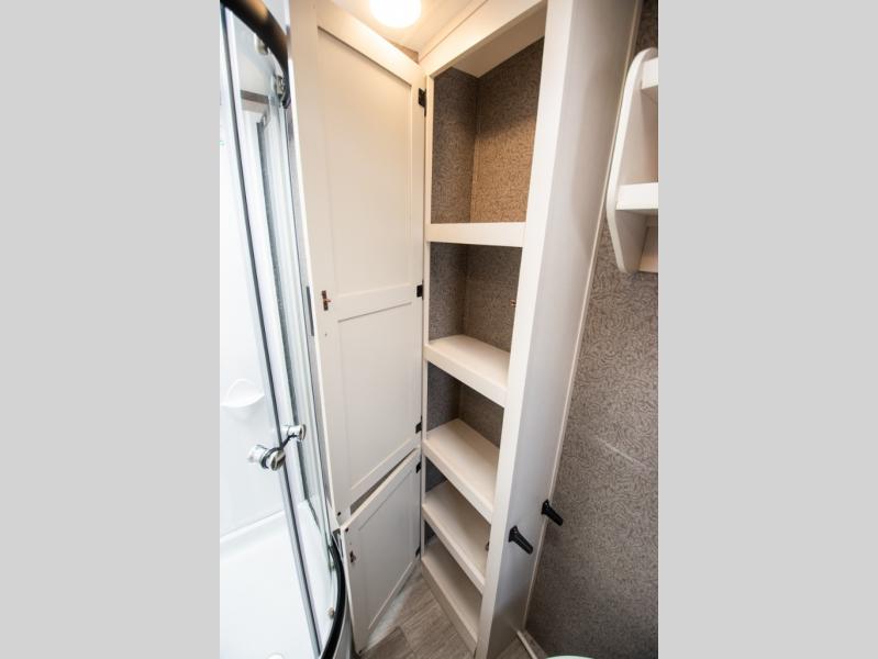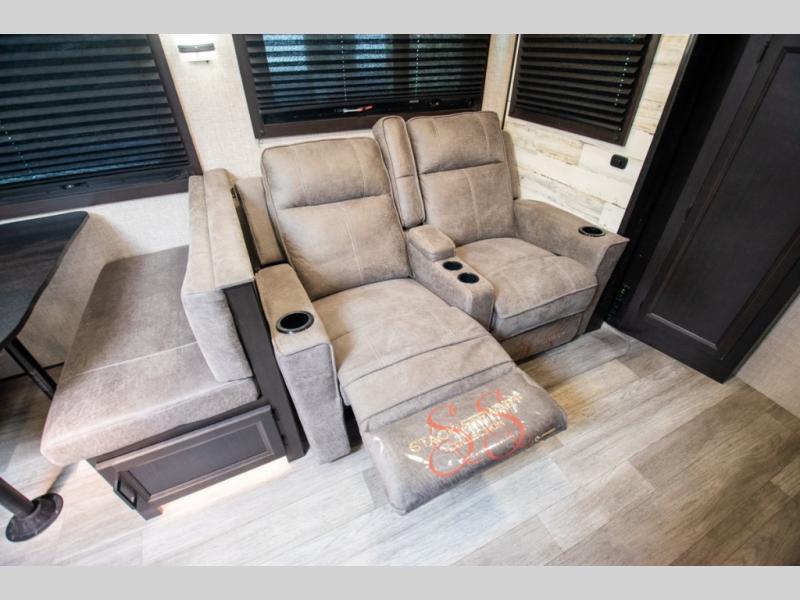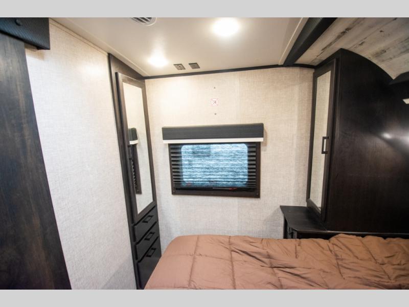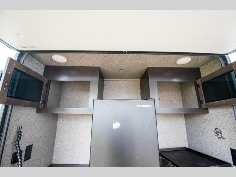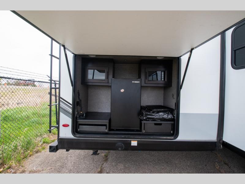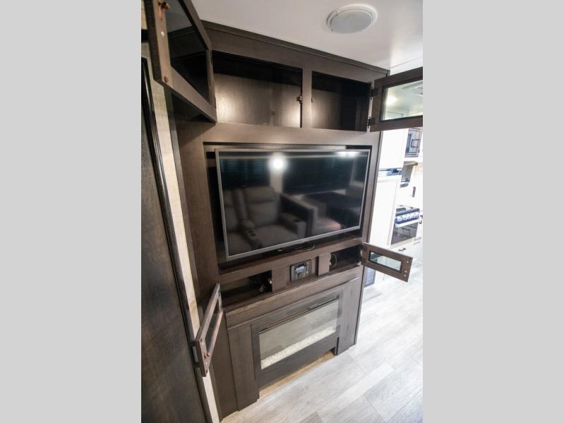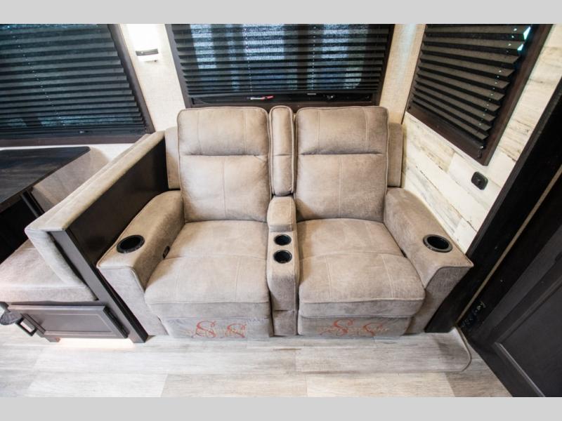 Family camping trips just got sweeter in this double slide out travel trailer that can sleep nine to ten people each night. You will enjoy your own private bedroom up front with a queen bed and three wardrobes. Your guests can make themselves comfortable in the rear private bunkhouse suite that includes two bunks, a tri-fold sofa, plus a convenient half bath! The full bath includes a radius shower with a skylight, a medicine cabinet, plus a linen closet for clean towels. This model includes a three burner cooktop and a microwave oven indoors to prepare meals, plus there is an outdoor kitchen for a sunrise breakfast. There are even two power awnings for maximum protection from the hot summer sun!