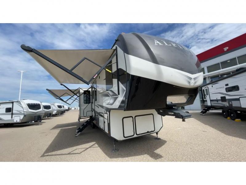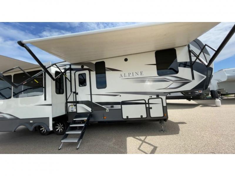 Luxury is not an option, it is a standard with each one of these Keystone RV Alpine fifth wheels! A 100" wide body construction, almost 7' tall slides, high ceilings, and panoramic frameless windows create an open, residential feeling. The Tru-Fit slide construction is more durable and minimizes motor structural stress, as well as resists leaking. Exclusive 12V color-coded wiring is different from conventional RV wiring in that it is easy to trace and clearly labeled to help savvy owners with DIY diagnosis/repair and helps dealer service techs troubleshoot/repair quickly which saves you time and money. The in-floor heat vents run straight through the unit and are typically positioned in low-traffic areas just like in your home for a more efficient air flow, plus it helps to keep the cabinet storage space. Come find your favorite model today!