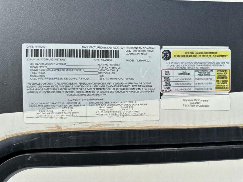 *******CONSIGNMENT UNIT******PREOWNED 2022 KEYSTONE ALPINE 3790FK FIFTH WHEEL*******CONSIGNMENT UNIT