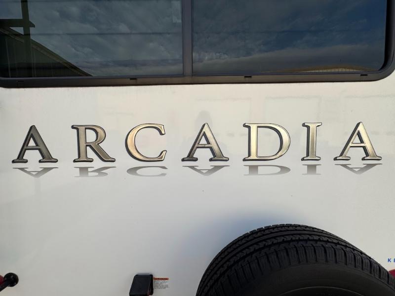 The easy-to-tow Arcadia Half-Ton fifth wheels by Keystone are packed with luxury features and convenient amenities to make each trip enjoyable. There is a Max Turn Technology front cap design for improved turning radius, and the Ground Control 3.0 auto-leveling system will make set-up easier than ever. You can bring along all of your camp gear along since these models include two XL pass-through baggage doors, plus smart storage spaces inside for your valuables. The Peak Weather Package features better insulation, an enclosed underbelly, and a 35,000 BTU furnace. Inside, you'll find designer vinyl flooring throughout, residential "Roman" shades with black-out backing, custom cabinetry with solid wood, and many more comfortable features.