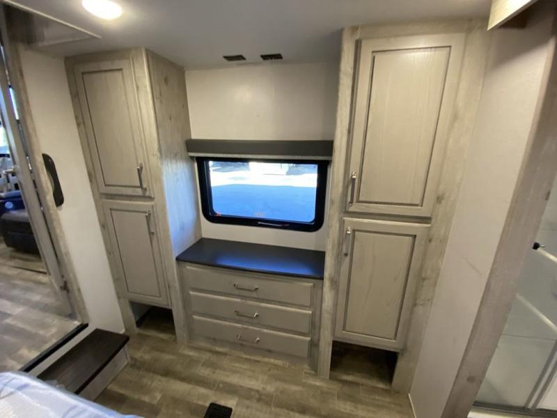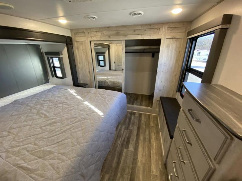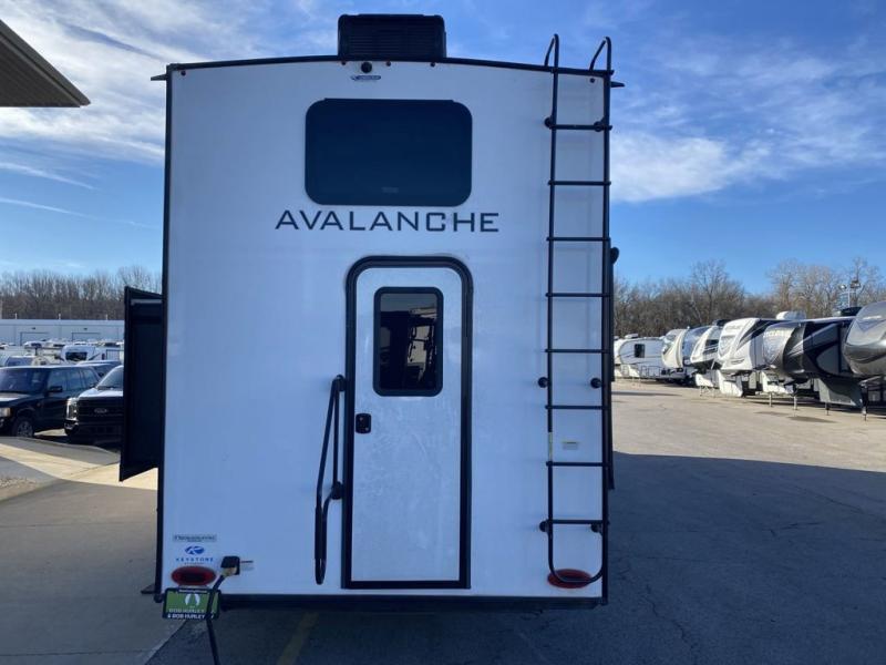With any Keystone luxury full-profile Avalanche fifth wheel, you will experience wide-body construction that allows you to stretch out and stay awhile during any season thanks to the Polar Pack All Season Protection that includes a heated and enclosed underbelly, an Astro foil reflective layer on the roof, front and rear walls, and two static attic vents, plus more! The interior offers hardwood slide out fascia with wood accents, crown molding, plus your choice of modern interior design. There are many more Keystone exclusives, like the Tru-Fit slide construction, the in-floor heating ducts, the 4G LTE and Wi-Fi prep, and much more to bring you a full-packed, luxury fifth wheel!